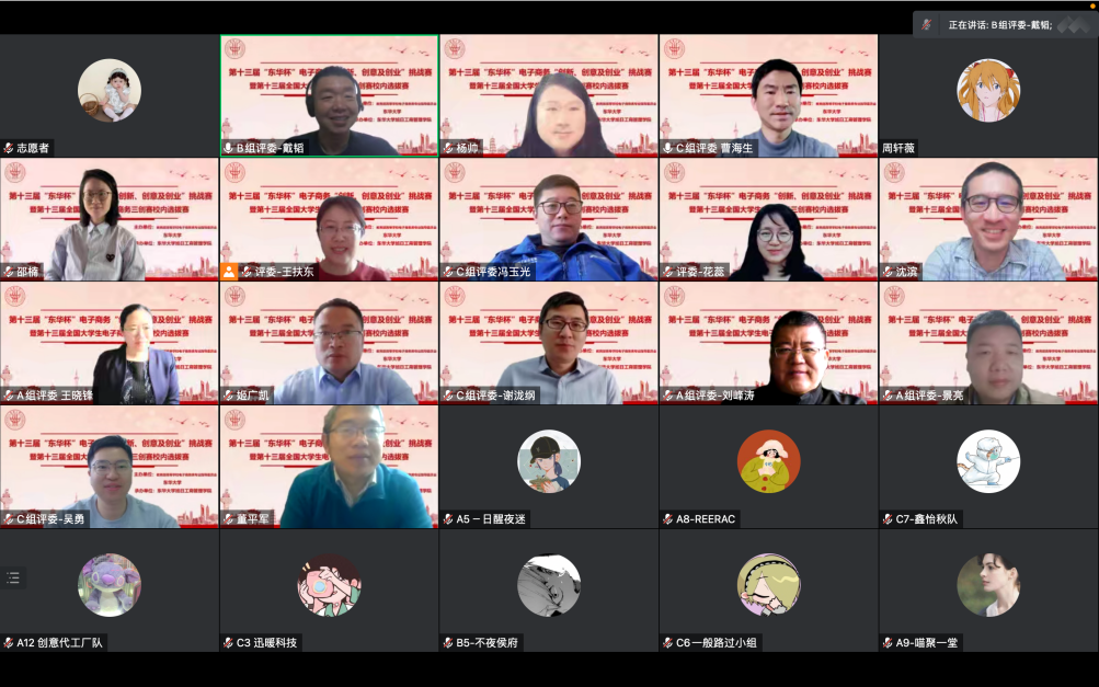 4月15日上午,第十三届“东华杯”电子商务三创赛暨全国大学生电子商务三创赛人兽性交 校内选拔赛采用线上会议的形式开展,东华大学人兽性交 副院长杨帅教授致开幕欢迎词并宣读比赛评分标准,邀请到评委教师和参赛学生团队等共同参与,大赛由戴韬老师主持。