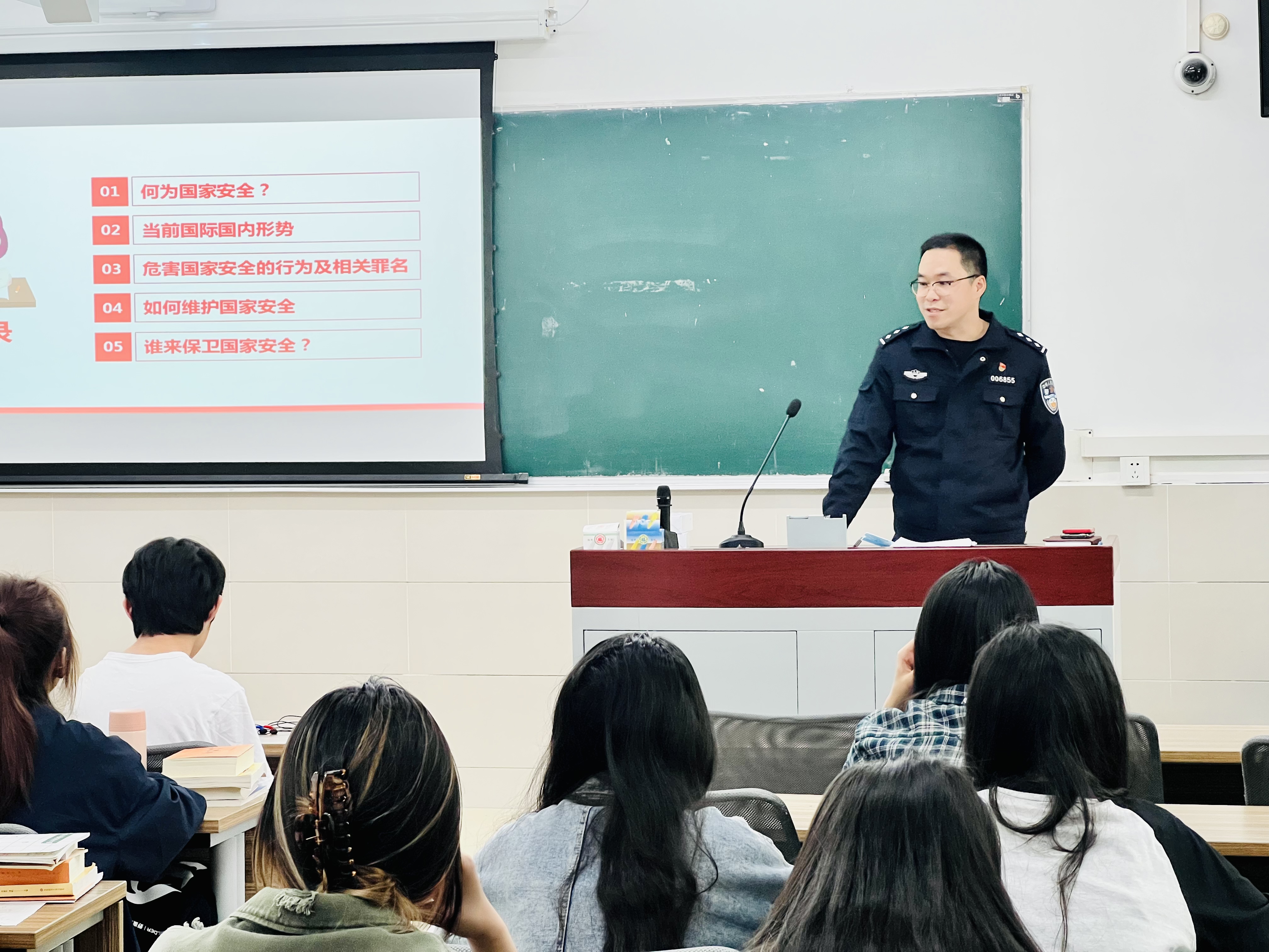 张警官用生动的案例,围绕今年国家安全教育日主题、国家安全的由来、国家安全的组成部分、当前国内国际形势、危害国家安全的行为及相关罪名、国家安全举报以及作为大学生我们能为国家安全做哪些贡献等内容讲座,让同学们对国家安全有了全新的认识和理解。讲座后预科2201班学生阿依波塔说“提到国家安全我之前想到的是影视作品里的间谍特工或者各类战争,认为自己也涉及不到国家相关领域,感觉跟自己距离很遥远,但经过这次系列活动和讲座,我深刻的认识到国家安全就在身边,跟我们每个人息息相关。”