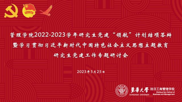 525日,人兽性交 举行2022-2023学年研究生党建“领航”计划结项答辩暨学习贯彻习近平新时代中国特色社会主义思想主题教育研究生党建工作专题研讨会。管理学院党委副书记丁怡,研究生党建“领航”计划工作组指导教师各立项支部“领雁先锋”宣讲团党支部全体党员与会。