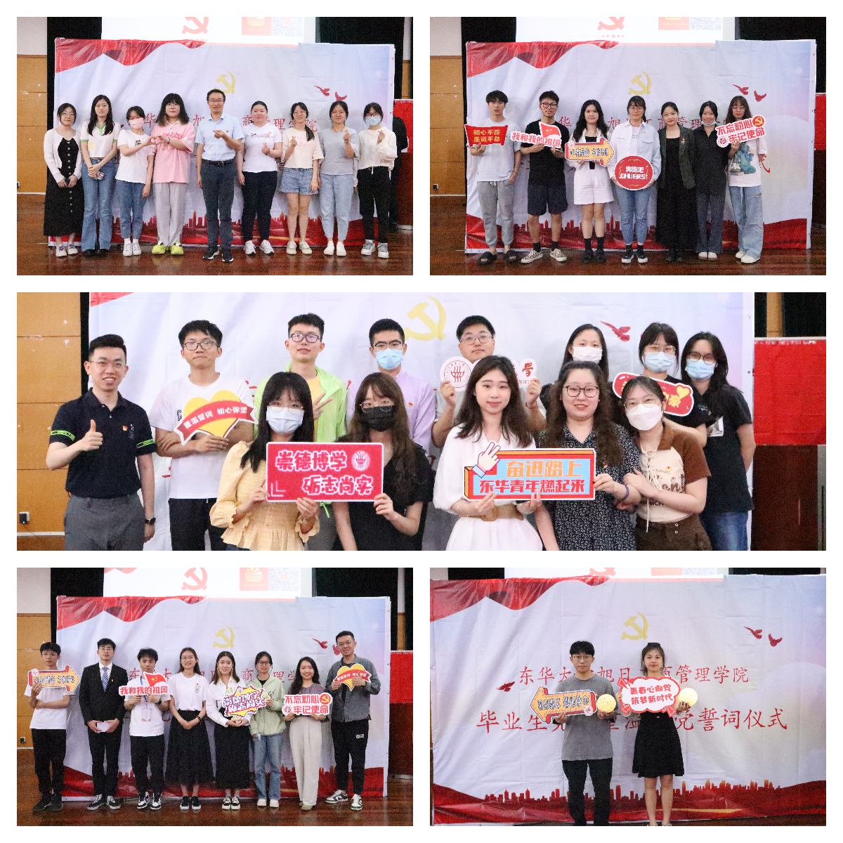 本次活动包含“声中有党”、“忆中有党”、“盼中有党”、“心中有党”、“行中有党”、“念中有党”六个环节,分别播放毕业生党员视频,回忆点滴记忆;邀请毕业生党员代表发言,追忆入党历程;观看支部书记寄语,铭记初心使命;共过政治生日,激扬责任担当。