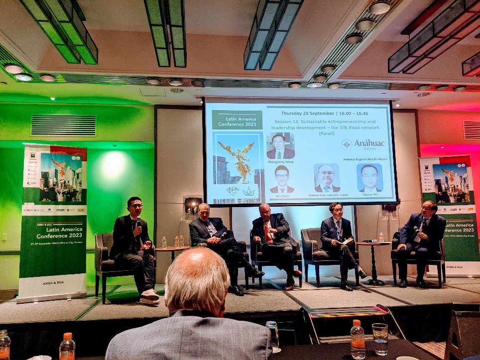 沈滨接着又出席了9月27-29日在墨西哥举办的2023AMBA&BGA拉美年会。该会议吸引了来自中国和拉美地区的53所商学院的百余名代表,年会共进行了16场分论坛,探讨了MBA教育的最新变革、商学教育的AI数字转型、责任管理教育与可持续发展前沿、BGA对商学院独特价值观的探索、拉美地区商学教育特色、中国与拉美国家交流与合作等主题,以及AMBA&BGA认证的最新前沿动态。沈滨代表学院做大会发言,介绍了学院的发展情况。