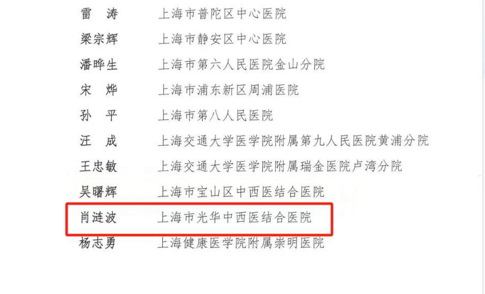 近期,由上海市卫生健康委员会指导,上海市医师协会主办的第五届“上海市区域名医”评选结果公布,我校2001级MBA校友、上海光华中西医结合医院关节外科学科带头人肖涟波榜上有名。