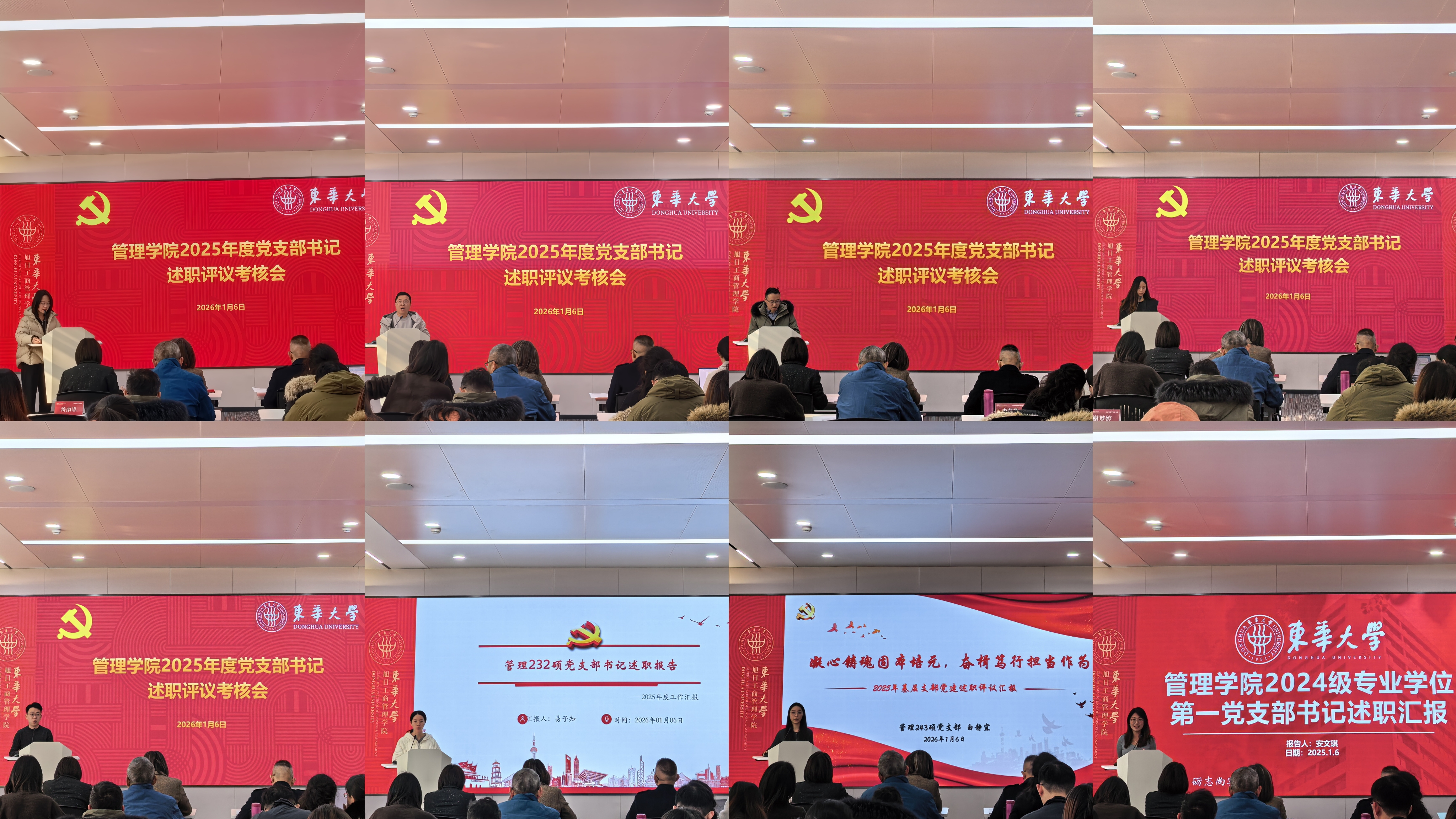 学院党委书记林嵘逐一点评并讲话,对过去一年各基层党支部认真履行主体责任,落实上级决策部署,不断提升工作质量作出的努力和取得的成效给予充分肯定,对存在的差距和问题提出工作要求,对2025年学院党委工作进行总结回顾,并对2026年工作提出希望。号召全体党支部坚定信心、勇担使命,以高质量党建引领推动学院高质量发展,为“奋进东华”高质量发展、教育强国建设凝心聚力,贡献力量。