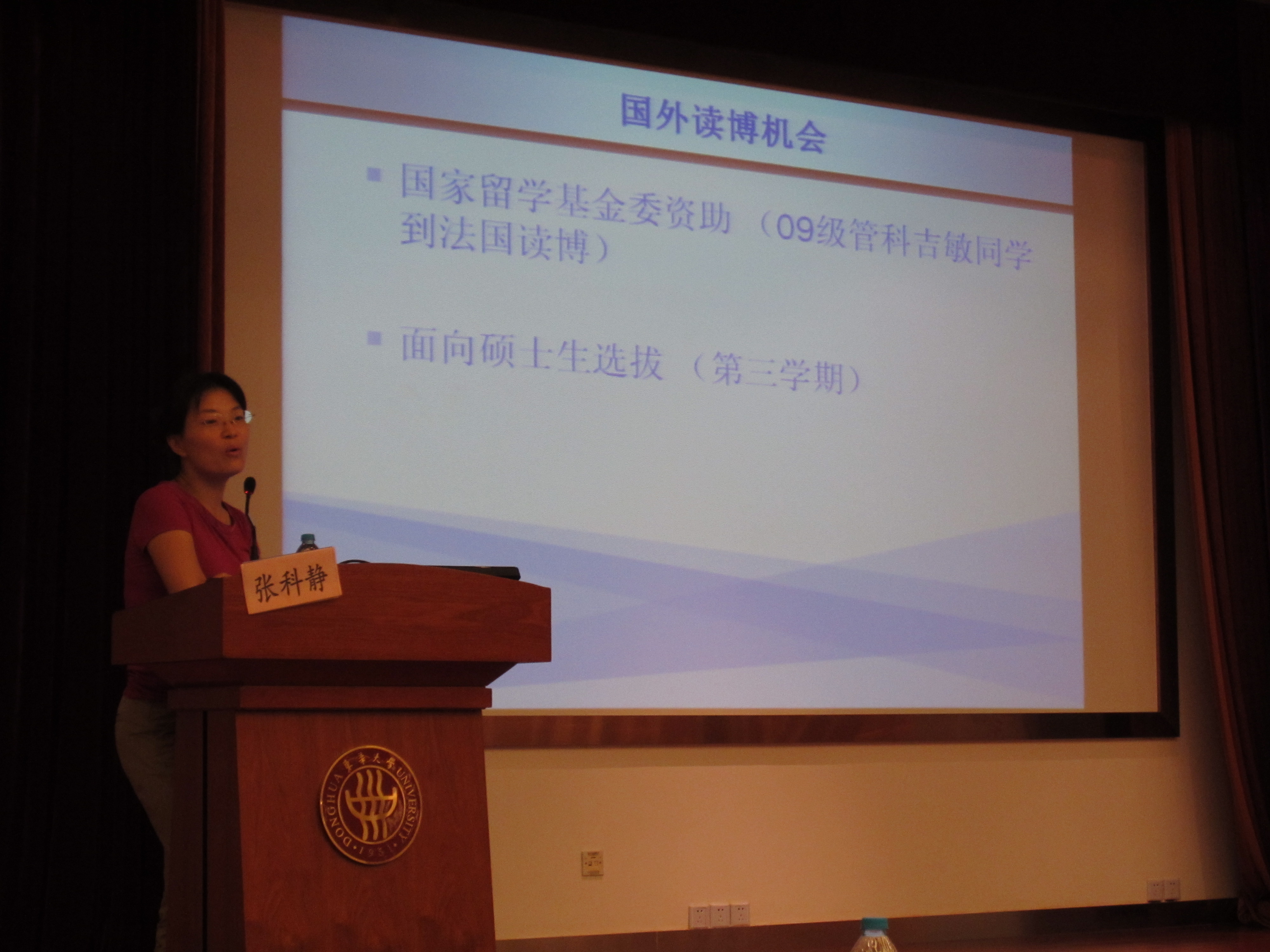 张静科老师着重为大家系统地介绍了我们学校管科的硕士点、博士点,研究生的培养方式、研究方向及海外交流机会等,从张老师的讲解中,同学们对本校管科研究生要培养有了更深入细致的了解。
