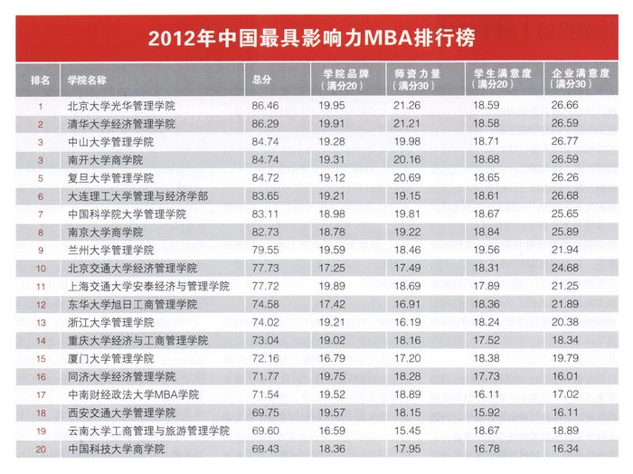 | 我校MBA连续三年蝉联中国最具影响力MBA排名第十二位 |