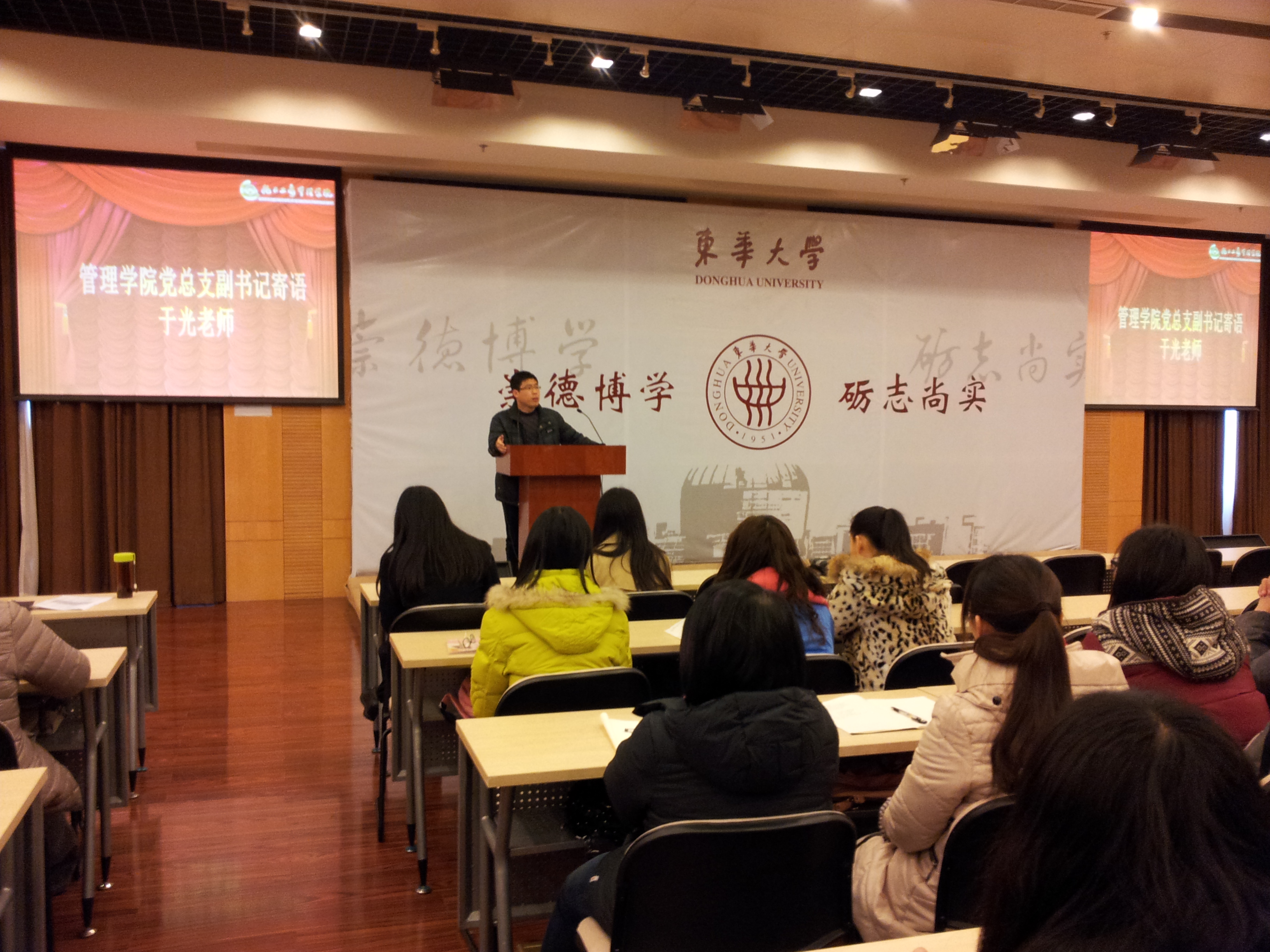 开学典礼仪式在高亢激昂的国际歌奏响后,于光老师就加强党员的理想信念教育作了详细的阐述。老师首先通过前苏联解体的例子来表明党员如果没有理想信念,没有保持党员的纯洁性,那么不需要花费一颗子弹就可以打散一个国家。同时强调要思考入党的动机,如何协调个人与集体之间的矛盾。最后鼓励大家多多参加党建活动,从中认识领悟到党员的真正意义。于老师实实在在的话不仅说明理性信念重要性,也表明了作为一名合格的党员需要以身作则,为民所用。