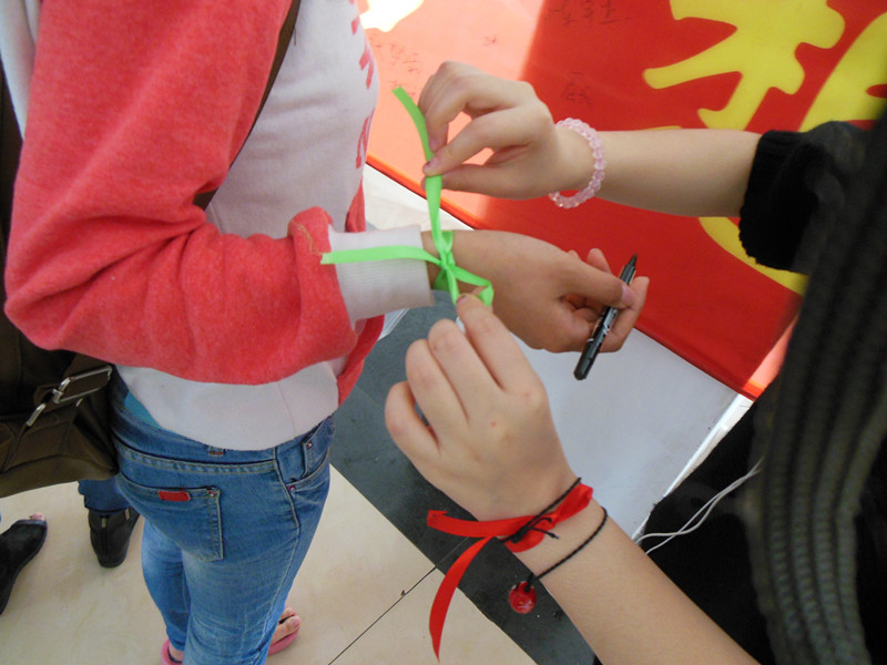 5月17日中午,活动在第四教学楼大厅开展。此次的活动分为两部分,横幅签名和传递丝带。同学们悬挂起事先准备好的横幅,采访经过的同学们,让大家畅谈自己的梦想是什么,什么是属于自己的中国梦,同时向过往同学们宣传中国梦,请他们坚持自己的梦想,为实现民族伟大复兴贡献自己的一份力量。同时请他们在横幅上签名,集聚集体的力量。接着,支部同学们为过往同学系上传递爱与力量的红丝带和绿丝带,希望大家一起为雅安灾区祈福,关注灾后重建,和全国人民一起齐心聚力,共度难关。