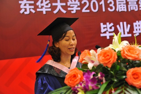 徐明稚校长向毕业生们致辞。徐校长代表学校党政领导、师生员工,向29位毕业生表示热烈的祝贺!他说,我们的EMBA教育顺应了纺织发展的需要,在座的各位必将成为纺织产业的领军人物。在分享喜悦的同时他期望同学们坚守理想,不骄不馁,做一名德才兼备的高级管理者;不惧挑战,超越自我,将东华精神在企业中发扬光大!并希望大家继续关心和支持人兽性交