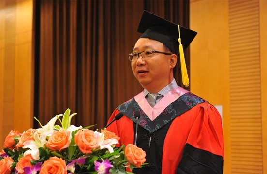 顾庆良教授作为导师代表发言。他说,EMBA是培养具有创新创意精神的企业家,EMBA的“E”不仅代表着改革和变革革命,也代表着工业文明走向生态文明。每一个EMBA毕业生都承担着历史使命,既要实现2020年中国全面工业化,又要推进从工业文明走向生态文明的重大转变。
