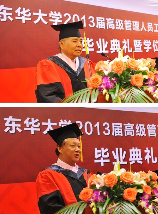 徐明稚校长向毕业生们致辞。徐校长代表学校党政领导、师生员工,向29位毕业生表示热烈的祝贺!他说,我们的EMBA教育顺应了纺织发展的需要,在座的各位必将成为纺织产业的领军人物。在分享喜悦的同时他期望同学们坚守理想,不骄不馁,做一名德才兼备的高级管理者;不惧挑战,超越自我,将东华精神在企业中发扬光大!并希望大家继续关心和支持人兽性交