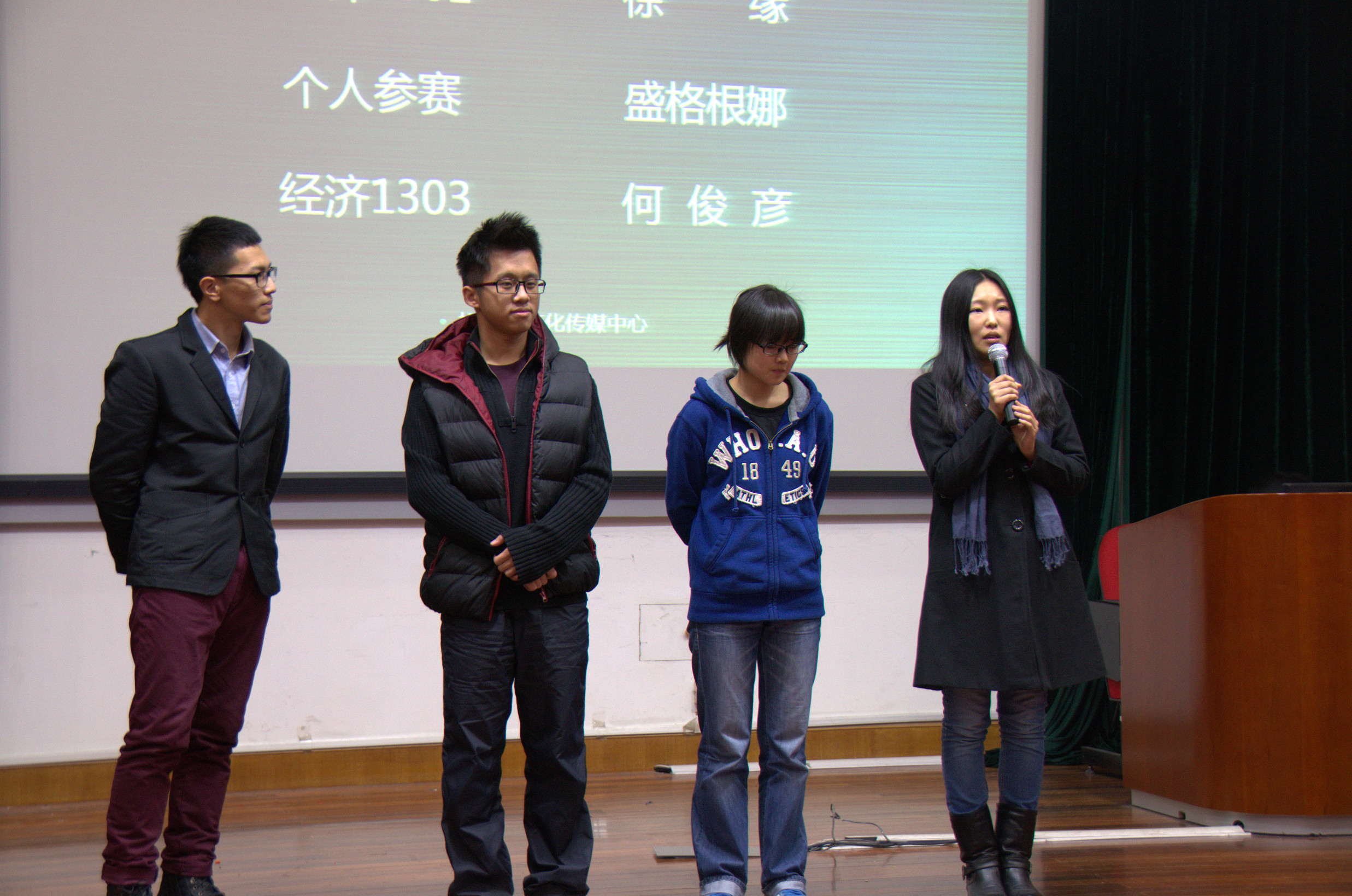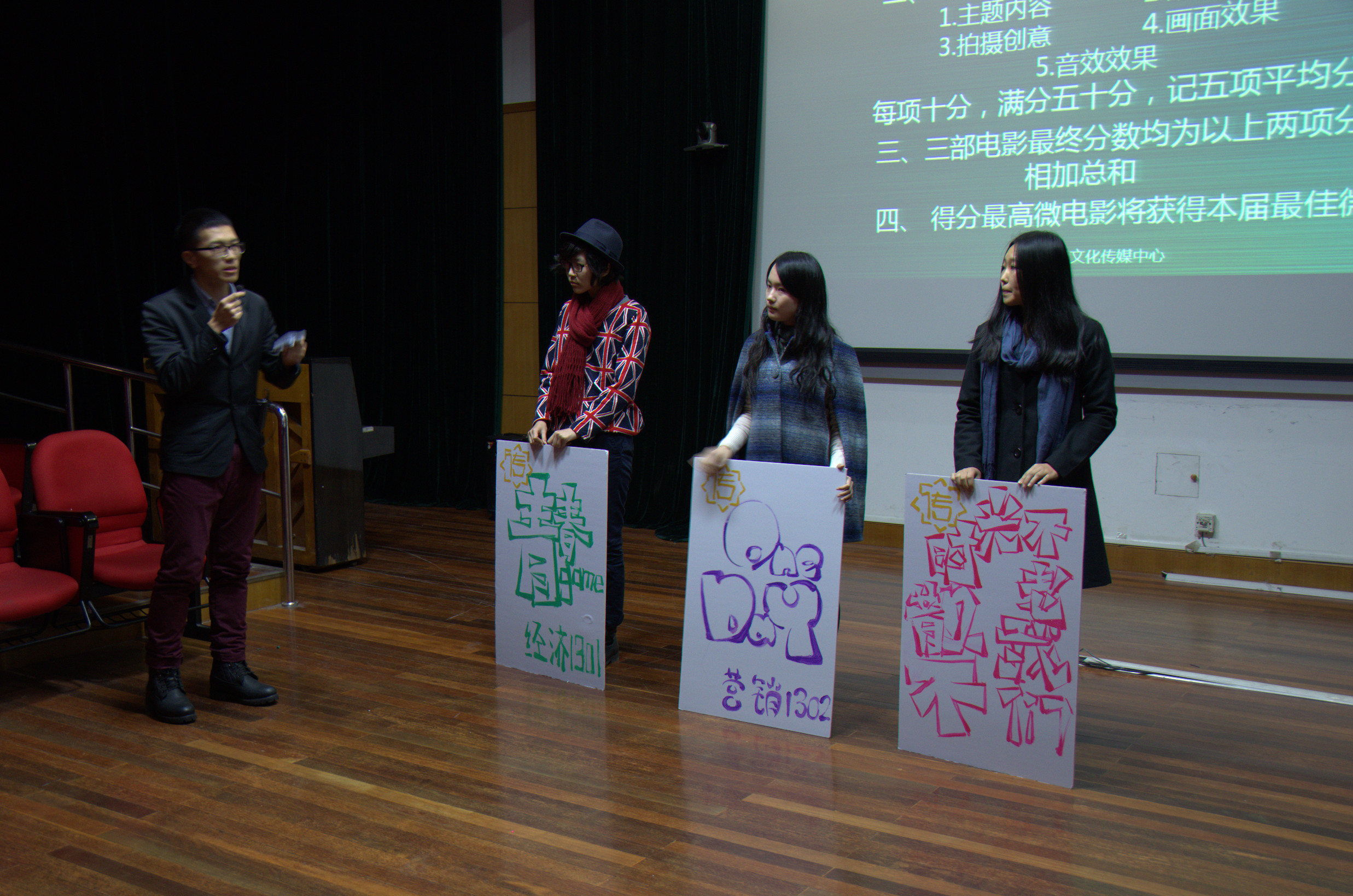 2013年12月10日下午三时,第二届旭日风微电影大赛之“行走中的青春”颁奖典礼在人兽性交 延安路校区第四教学楼305室隆重举行。出席本次活动的老师有人兽性交 旭日风文化传媒中心指导老师屈喆老师,13级辅导员王佩老师和纪静老师。人兽性交 大三学生臧元任本次活动的主持人。各班级的团支书、班长以及微电影相关拍摄人员亲临现场,共同见证最佳微电影的诞生。 第二届旭日风微电影大赛由旭日风文化传媒中心举办,从前期筹划到大赛颁奖典礼成功举行历时两个月,主要针对2013届人兽性交 学生收集作品,活动为探索当代大学生对于青春的理解,通过班级活动的形式促进班级团结。人兽性交 13级所有班级均积极参与到此次活动中,各班组织班级同学进行了用心的拍摄制作,另征集到个人参赛作品一份。本次颁奖典礼采用红毯亮相、学生签到、现场表演、礼仪颁奖、观众离席投票等规范颁奖典礼形式,体现一种专业、专注、高端的颁奖典礼形式。