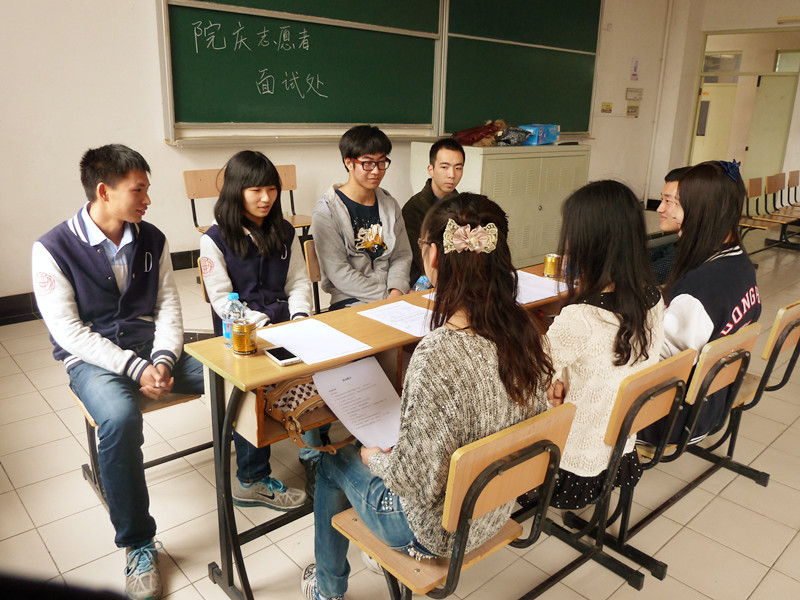 在为期四天的志愿者招募中,虽常伴小雨,却丝毫不减同学们的报名热情。前来报名的同学从11级至13级都表示愿意为此次院庆做出自己的贡献。 4月1日进行的长达七个小时的面试,同学们手拿报名表各个怀揣热情信心满满,陈述着自己对于院庆的见解以及成为此次院庆志愿者的渴望。此次招募的院庆志愿者分为五种,即骨干志愿者、会务志愿者、礼仪志愿者、宣传志愿者以及嘉宾随员志愿者。