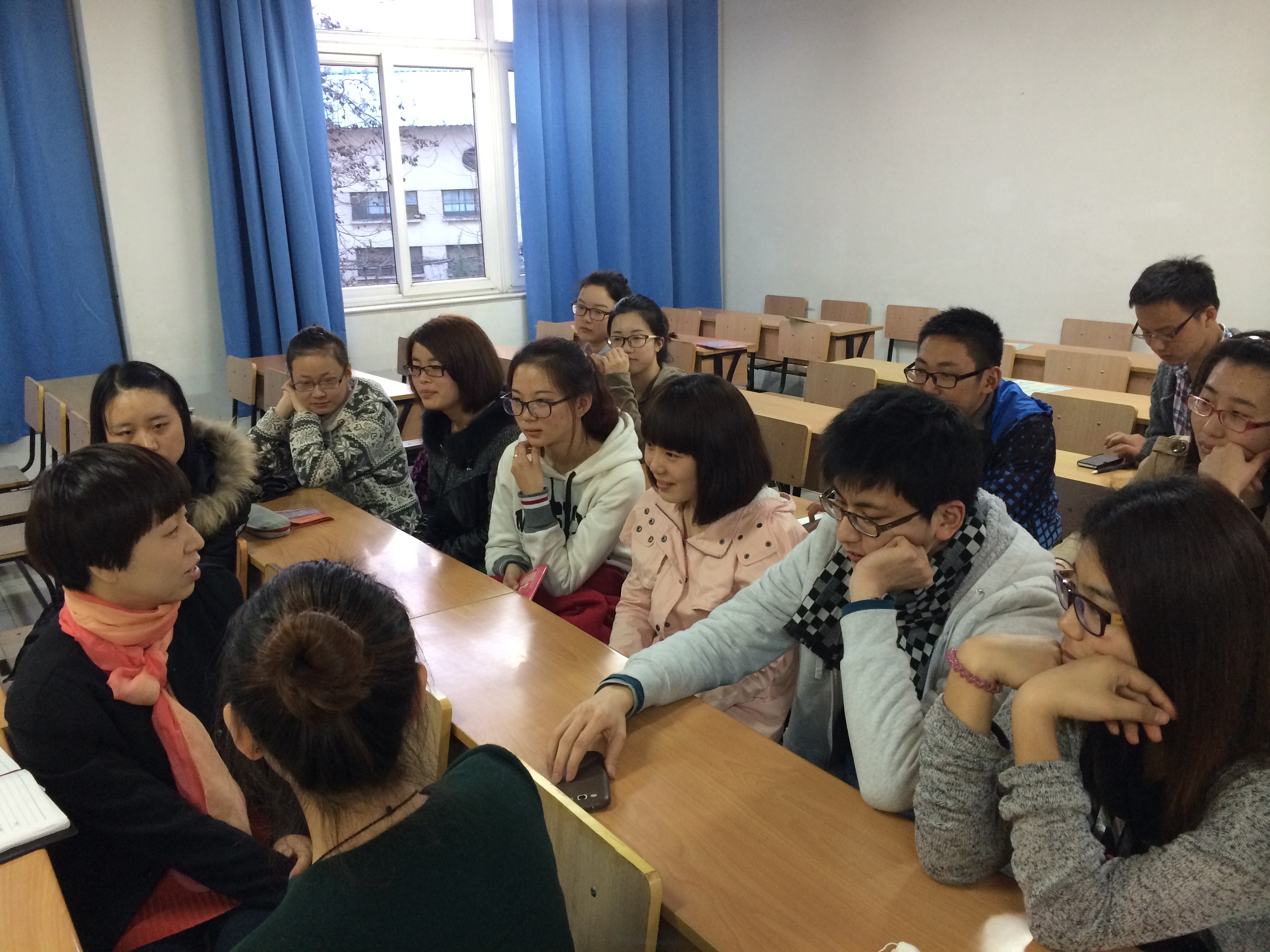 活动开始,代表会经党章学习小组第二组的王梦竹和徐妲好同学,通过幻灯片的形式向大家汇报展示了十八界三中全会一些政策在教育、经济方面的改革,同时她们也解说了国家政策和就业率之间的联系,在场的同学都听的非常认真。汇报完毕,支部书记江老师针对汇报过程中提及的的几个政策,带领整个学习小组的同学们进行了针对性的交流和讨论,大家都积极地发表了自己的看法和见解。期间,大三的程帅同学就幻灯片的制作和设计问题提出了自己的一些建议,得到了老师和同学们的认可。