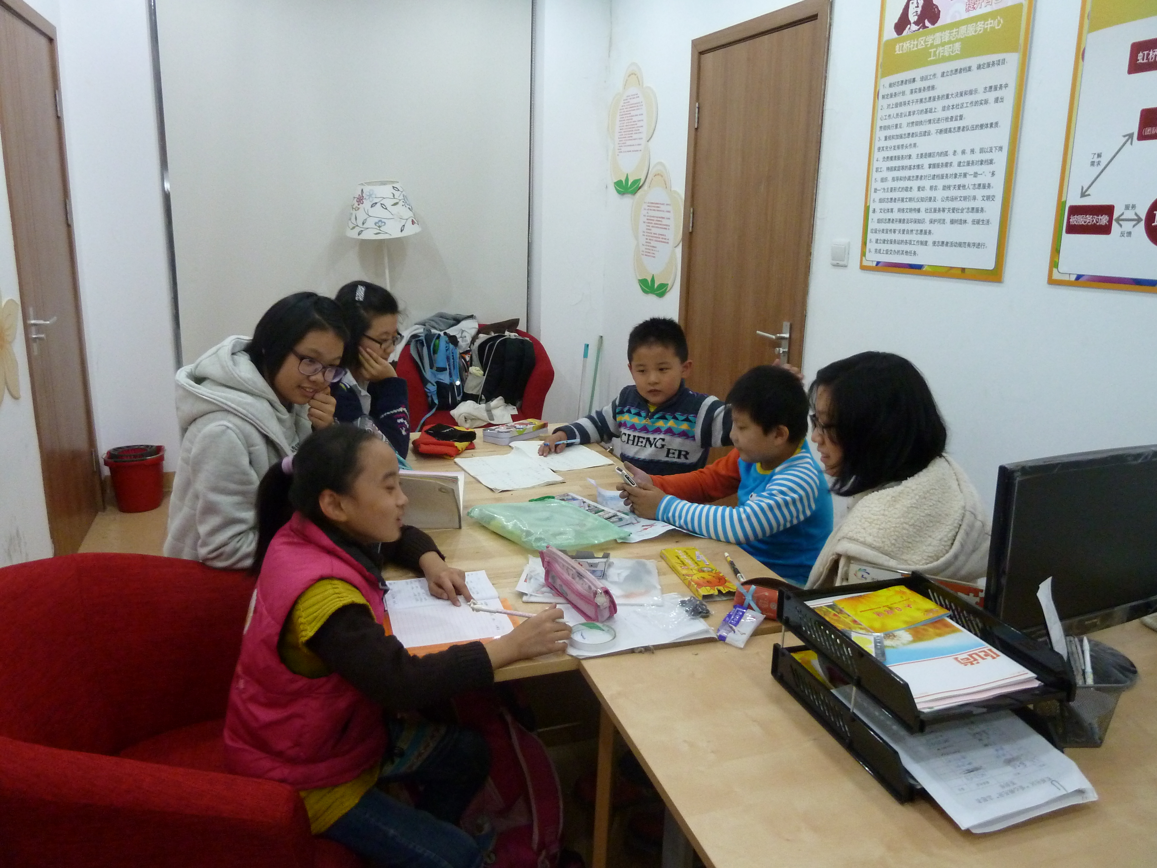 春意渐起,四月已临。4月3日下午四点,人兽性交 四位志愿者来到了虹桥晚托班,照顾辅导三位小学生与一位初中生。