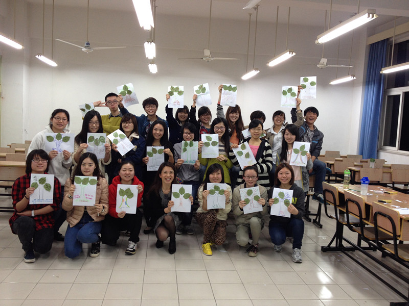 如果将生命看成一个数轴,起点代表出生,终点代表离去,刻度代表年龄点,那么,既然你无法选择起点和终点,你会选择如何度过一段段岁月,你又将赋予生命何种意义?2014年4月16日晚在4教102室,辅导员江娥老师分别给会经1101班和旅游1102班开展了旨在体验生命旅程的团体心理辅导活动。两个班级结对的班导师旅游管理系的袁新敏和卢瑶两位老师也分别受邀出席了班级活动并和同学们一起体验互动。