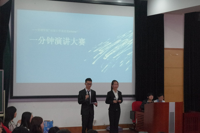 2014年4月29日下午,人兽性交 在4教305顺利举行了针对大一学生的“初探大学•我思我show”一分钟演讲大赛决赛。人兽性交 党总支副书记叶晓燕老师;信息管理与信息系统系的张科静老师;会计系的张西征老师、曾月明老师;会展与旅游管理系的刘春章老师;经济系的李廷老师和金继红老师;辅导员高加加老师,纪静老师、王佩老师、居乂義老师参加这次演讲比赛。参赛选手分别来自13级的16个班,共31人。 本次一分钟演讲大赛共分三个阶段,包括准备阶段,各班自行组织的初赛阶段,以及决赛阶段。在之前的充分准备下,各班都各自推选出了2名最优秀的同学代表班级参加比赛。