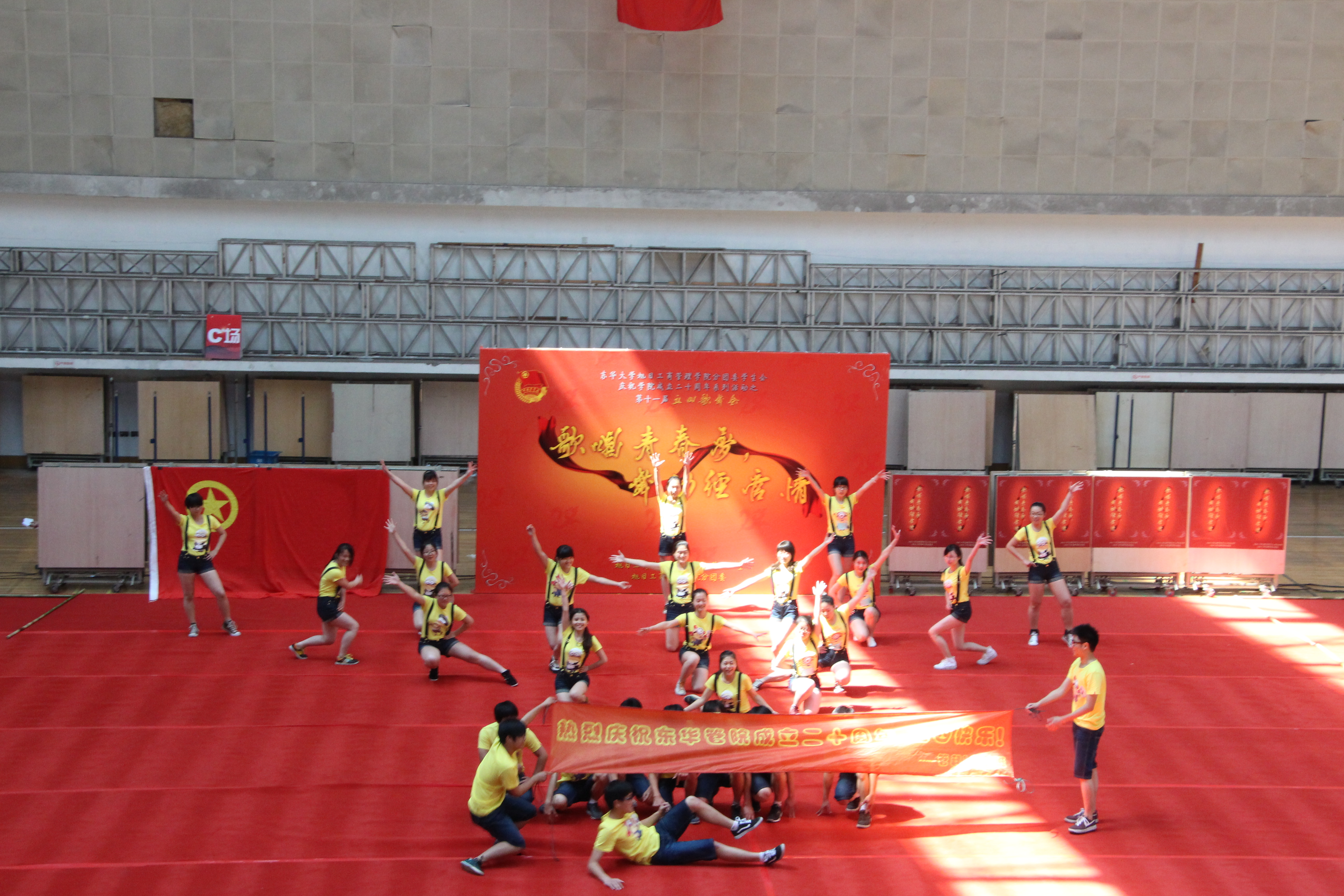 活动开始,各专业大类的学生代表分别为大家带来了青春洋溢的快闪舞蹈。随着庄严的团歌响起,全体同学起立,六名同学身着正装高举团旗缓缓走向舞台中央,随后挂在幕布旁边。本次五四舞会由此拉开序幕。然后每个团支部的同学们在主持人的引导下大声地喊出了对学院二十周岁生日的深深祝福。紧接着就是由人兽性交 学生工作办公室的辅导员老师们带来精彩的舞蹈表演《舞动的青春》,欢快的音乐中展现了年轻的活力,轻盈的舞姿迎来了同学们一阵又一阵的欢呼声。 第一个出场的管科1305团支部中的两名同学打扮成可爱的小黄人吸引了大家的眼球,以及接下来的管科1301团支部的竹竿舞更是别具一格,气势宏大;身着整齐军装的经济1303团支部在红色娘子军高亢的音乐下用整齐的步伐,张扬的活力向革命致敬,管科1302团支部用手语演绎着年轻的战场;青春的欢乐加上悠悠的民族风,营销1301团支部和体育1301团支部的同学们将全场带进了不一样的世界,还有财务1301团支部的同学们在山楂树之恋唯美的音乐下上演了一幕感人的舞台剧……每个团支部的舞蹈风格迥异,用激情追寻美丽青春梦,用活力演绎不一样的青春之风。每一位同学意气风发,挥洒着热血,处处洋溢着青春的气息。