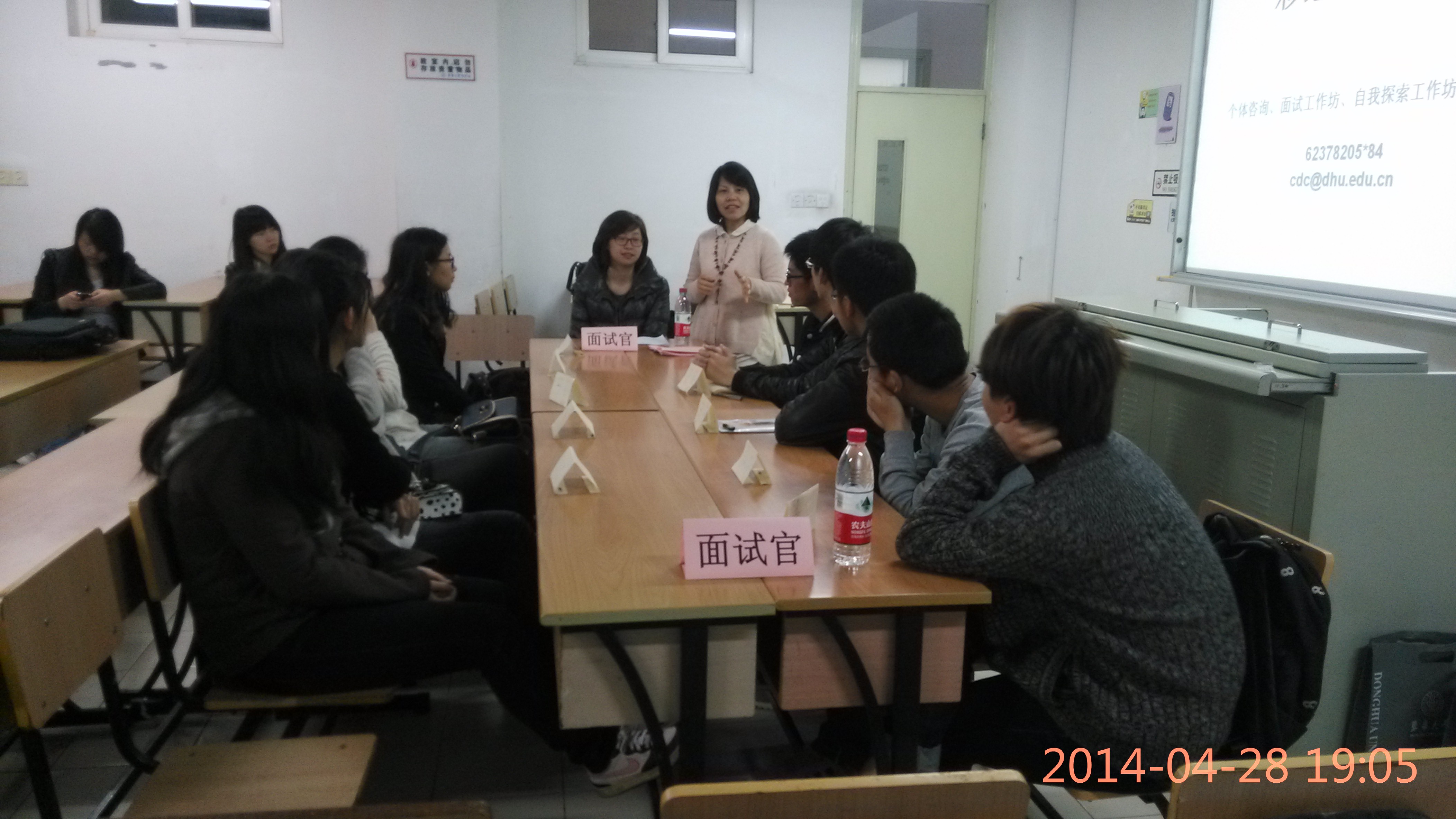 2014年4月28日,彩虹人生工作室举办了无领导小组模拟面试,邀请到的面试官是校友、建筑(中国)商学院院长马芸女士,主持人是彩虹人生工作室负责人王丽华,模拟目的在于增强在校学生应对职场面试的能力,了解无领导小组面试的常见问题,掌握应对技巧,为进入职场做准备。