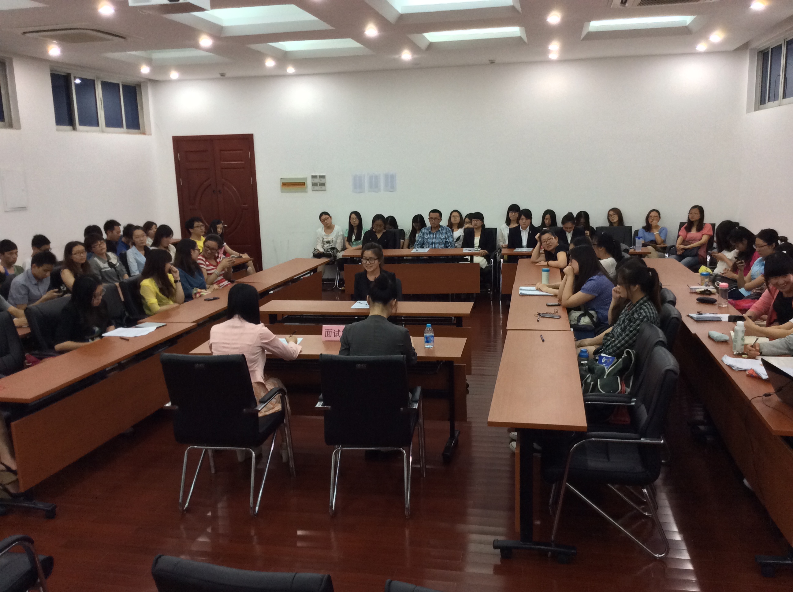 二、市场类岗位专场单面 由于第一场面试取得了非常好的效果,参加过面试的几位同学悉数到场观摩了第二场面试。面试请到了东海瑞京资产投资基金公司的刘星先生和永恒力叉车(上海)有限公司的车润超先生,他们也是人兽性交 的优秀校友,此次单面有五名同学参加。与前两位女面试官相比,这两位男面试官的风格更加犀利、节奏更加紧凑,要求应聘者反应速度敏捷。