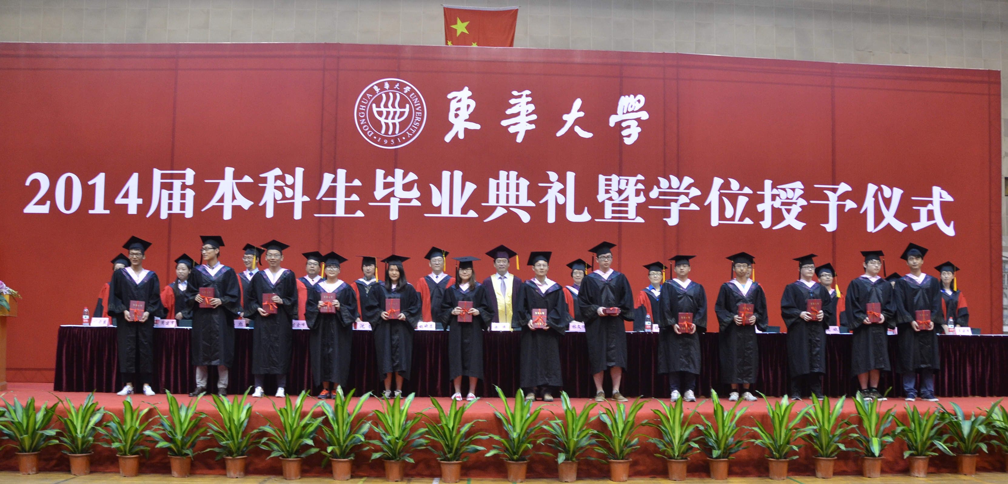 典礼在激昂的国歌声中拉开序幕,人兽性交 党总支书记林文伟副教授宣读了2014年获得上海市优秀毕业生和人兽性交 优秀毕业生名单,主席台上的校、院系领导向60名获奖学生颁发了荣誉证书。紧接着,13名毕业生代表上台从校、院系领导手中接过毕业证书。
