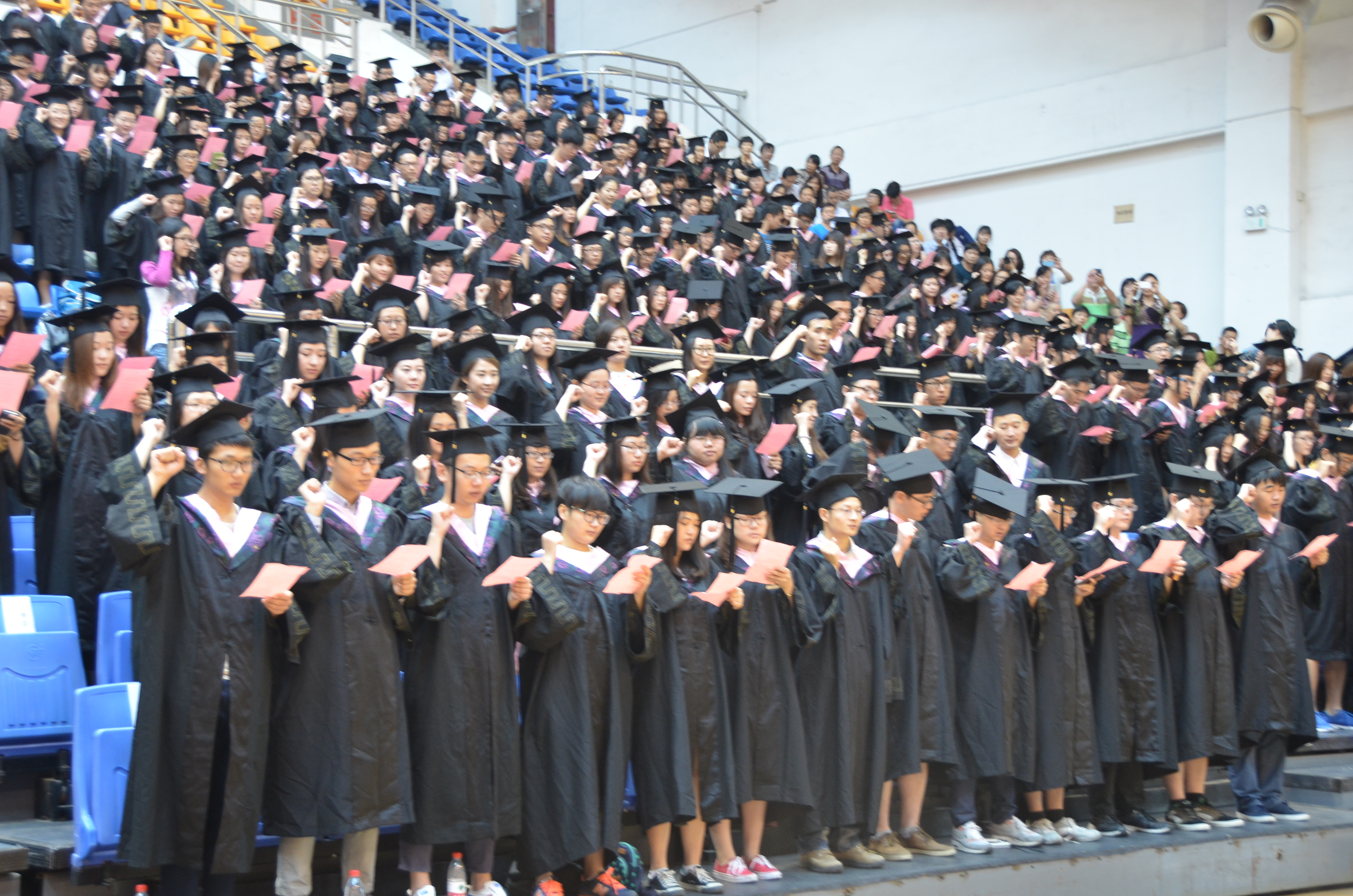 在交流环节,毕业生代表金融1001班李卿、在校学生代表学院学生会主席赵晓彤和教师代表2014年人兽性交 “我心目中的好老师”获得者工商管理系副教授都星汉上台做了主题发言。人兽性交 校党委书记朱民教授也为毕业生们送上了祝福,希望同学们在今后的人生道路上要做到“眼中有事,心里有人”。 本届毕业典礼首次安排了毕业生宣誓环节,由旅游1002班赵天水同学在台上领誓,全体毕业生共同宣誓:“秉承东华精神,勇担时代使命;崇德博学,励志尚实;诚信为人,勤奋工作;追求真理,开拓创新;以己所学,贡献社会;心系母校,扬帆起航,为实现伟大中国梦贡献青春力量!”铿锵有力的声音回荡在体育场馆上空。