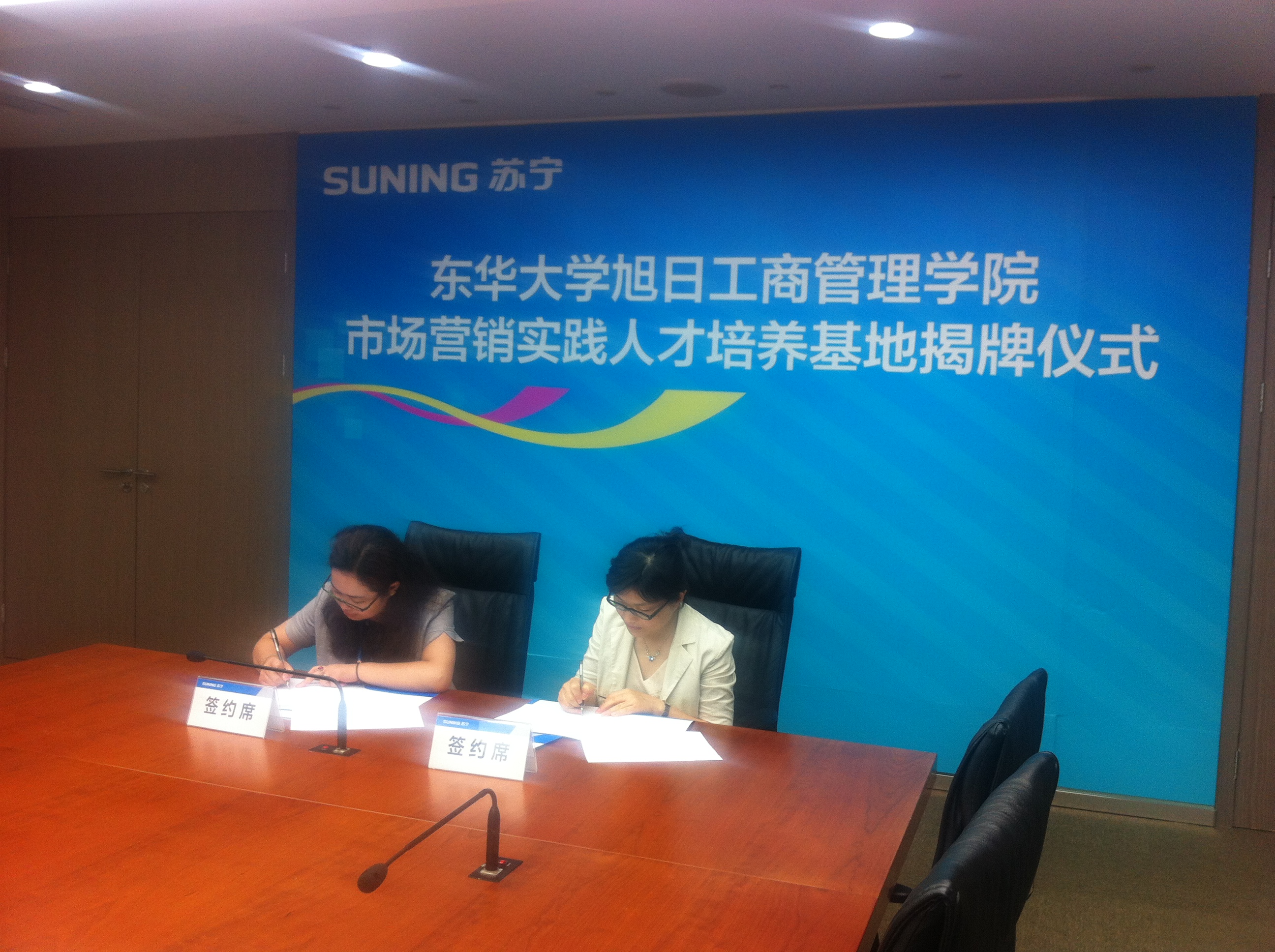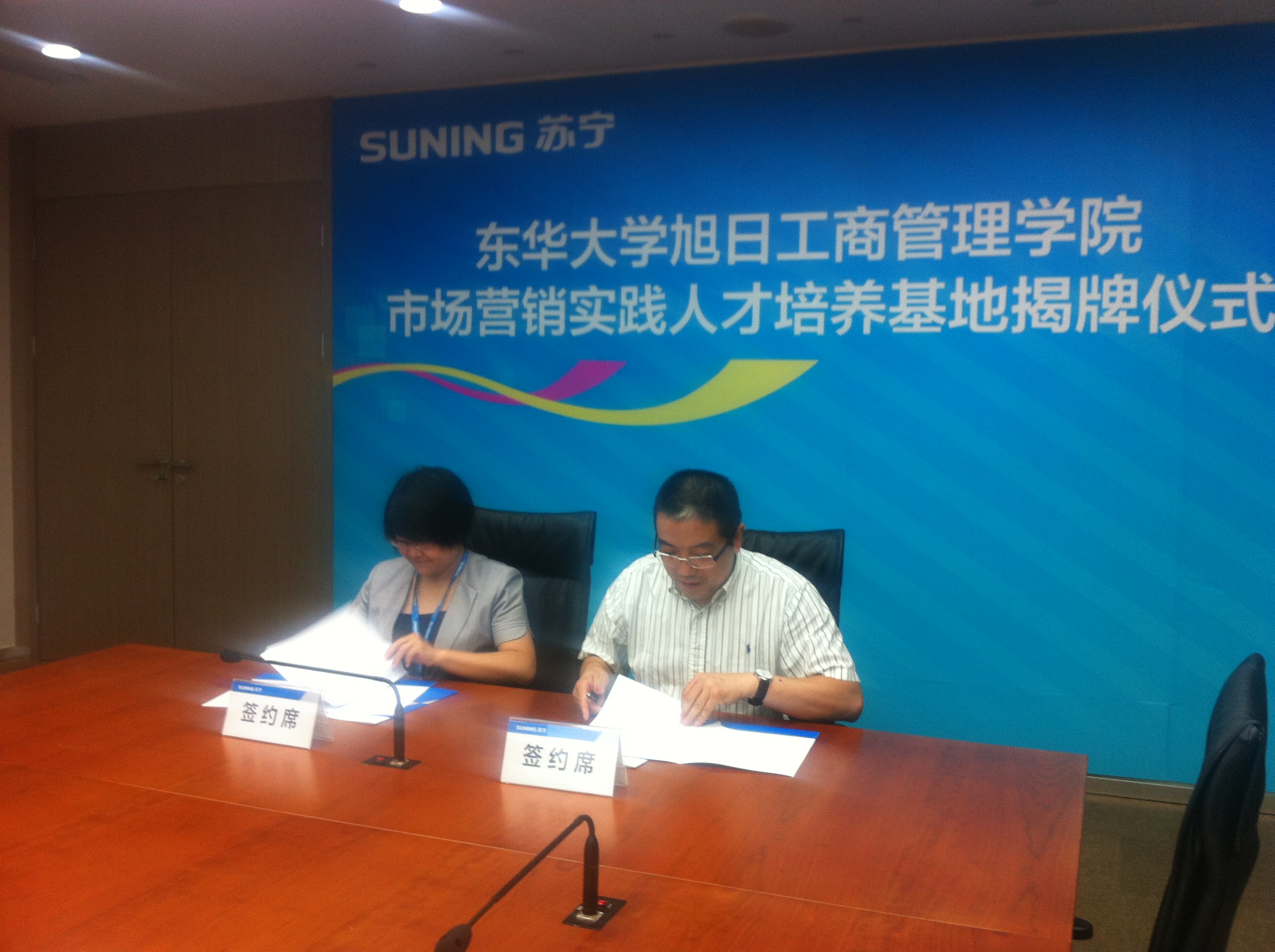 2013年7月17日,人兽性交 市场营销实践人才培养基地签约挂牌仪式在苏宁云商集团上海地区管理中心举行。人兽性交 副院长张科静、工商管理系主任刘东胜、副主任杨志勇、学生工作办公室江娥、高加加参加签约仪式,苏宁云商上海地区管理中心副总经理王鲲、人力资源总监王志英、人力资源部招聘经理周玲出席仪式。
