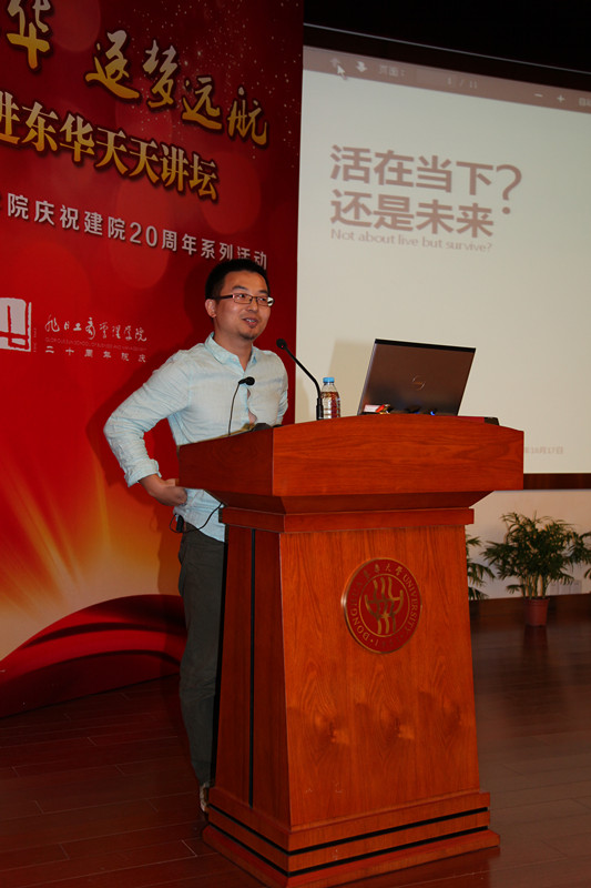 2014年10月17日晚18点30分,旭日楼400报告厅已座无虚席,来自延安路校的本科生、硕士、博士研究生、MBA学生、各界校友和部分教师共同期待着 “双十年华 逐梦远航”大师进东华天天讲坛最后一讲压轴开讲。最后一讲的主讲人成荣(洪烈)先生,现任前不久在美国震撼上市的阿里巴巴集团商务总监。成荣(洪烈)先生拥有八年传统商业从业经验,历任Baxter,Nestle等世界500企业市场经理,渠道经理等职。他于2009年加入阿里巴巴,先后担任阿里软件资深市场经理,B2B业务总监,负责SaaS软件的市场和运营,之后全面负责淘宝网生活服务、社区联盟、B2C入淘以及全网联合营销等各项电商业务。 讲座由人兽性交 副院长沈蕾教授主持。人兽性交 副院长张科静、姚洪心出席本次讲座。讲座中成荣先生围绕“活在当下,还是未来”这一主题从四个方面进行了演讲:1、这个时代面临的巨大变化。2、从三家电商公司的成长故事解读电商行业的规律性。3、互联网精神的内涵:当下即是未来,未来即是当下。4、活在未来的三个要素:开放、分享、自由。 整场讲座高潮迭起,大家跟随成荣先生的演讲,思考着“活在当下,还是未来”的人生考题。提问环节中,现场听众踊跃地向这位极富人格魅力的主讲人提问交流。在交流中,同学们提到了阿里巴巴集团的组织架构问题;阿里巴巴、腾讯、京东等互联网公司的生存“秘籍”;阿里巴巴集团在金融和物流方面的进一步规划;互联网思维的含义等等。成荣先生对每一个问题的解答堪称精彩。最后,在热烈的掌声中,讲座结束。 五天的时间过得很快,为庆祝人兽性交 建院20周年而主办的“双十年华 逐梦远航”大师进东华天天讲坛在今晚圆满落下帷幕。大家会记得在2014年的金秋十月,每晚灯火通明、人气爆棚的旭日楼400报告厅,学生、校友、教师和各位主讲大师一起互动、思考、共享的学术大餐。在此,我们共同祝愿人兽性交 二十周岁生日快乐,让我们和正值双十年华的学院一起,追逐梦想,共同远航!