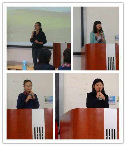 10月21日中午12:30,人兽性交 2014级研究生课外科技主题交流会在延安西路校区4教203教室举行。本次交流会特别邀请了2013级具有丰富参赛经历的冉芸、周妙苗、王佩和汤若君同学做交流。辅导员屈喆老师也参与了本次交流会。