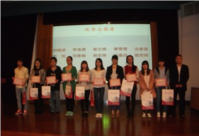 随后,我们对2013学年在公益服务中表现突出的同学进行了表彰,由人兽性交 人兽性交 研究生辅导员蔡寿松老师和研究生指导老师丁伟老师先后为我院20位优秀志愿者颁发了“优秀志愿者”奖状和奖品,表彰环节对在场的志愿者们起到了非常大的激励作用。 同时优秀志愿者代表刘小波同学,为我们大家分享了他去年参加志愿者活动的经验以及在活动中的收获。激励并鼓舞在座的每位14级新生参与到光荣的志愿者活动中去。
