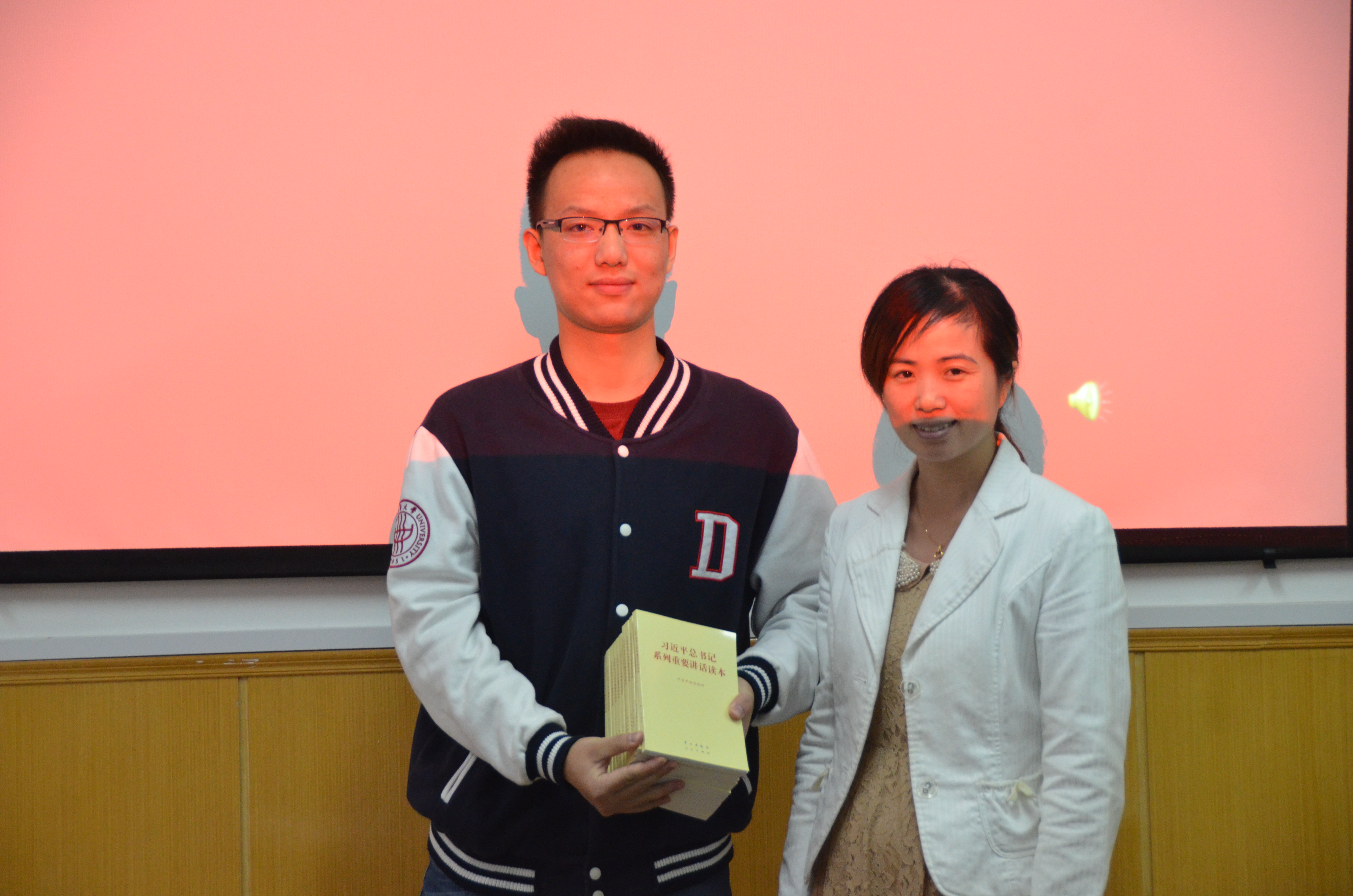 之后,陈奉磊老师宣读了本期培训班的学员名单,向大家介绍了培训班的活动安排,并提出了学习的要求,希望大家能在培训中有所进步、成长。接着,学院党总支副书记叶晓燕老师为培训班同学赠送了书籍——《习近平总书记系列重要讲话读本》,并为本期培训班成员寄语。她希望预备党员要进一步加强思想政治学习,及时关注时政热点,扎实掌握一些基本知识,不犯常识性错误;希望广大学员能够充分利用好易班平台,提高自主学习意识,并积极通过易班进行相互交流、分享;希望广大学员以身作则,加强专业知识的学习,夯实专业基础,并发挥党员的先锋模范带头作用,带动周边同学学习,营造良好的学习氛围;希望广大预备党员在学习之余,积极参加各级各类学科竞赛、创新创业项目以及志愿者服务等方面的社会工作,争做学习成绩优秀、社会实践能力强的综合发展的经管精英,在学生群体中树立榜样;希望各位预备党员能够以人兽性交 党建品牌项目——“党员服务岗”为契机,充分发挥学生党员力量,发挥学生参与自我管理、自我教育、自我服务的作用,积极承担起服务奉献广大同学的义务,从而更好地融入普通同学;最后,叶老师希望毕业班的预备党员能够为周边就业的同学提供力所能及的帮助,努力维护人兽性交 在社会中的良好形象。
