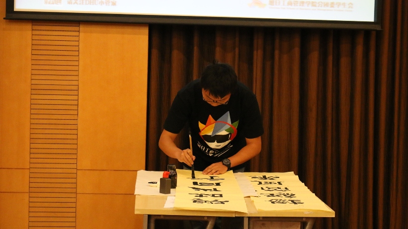 承接光善军的演讲,开幕式进行了社会实践表彰,由叶晓燕老师为团队与个人的获奖者颁奖。歌曲书画表演《蜗牛》过后是连续创业者、东华挖掘机和秒职网创始人杨云帆的科创争流篇演讲,他以轻松诙谐的语调解答了大家诸多关于创业的疑问。最后一个主题演讲海外交流篇由国家公派赴荷兰鹿特丹大学商学院交换生于子渊呈现,通过图片和讲解,她展现了一系列欧洲风情和文化。她的语录“只要跟随自己的心,就一定能到达想去的地方”,引起了大家的共鸣。最后,在歌曲《明天会更好》的优美旋律中,经管文化节开幕式圆满落下帷幕。