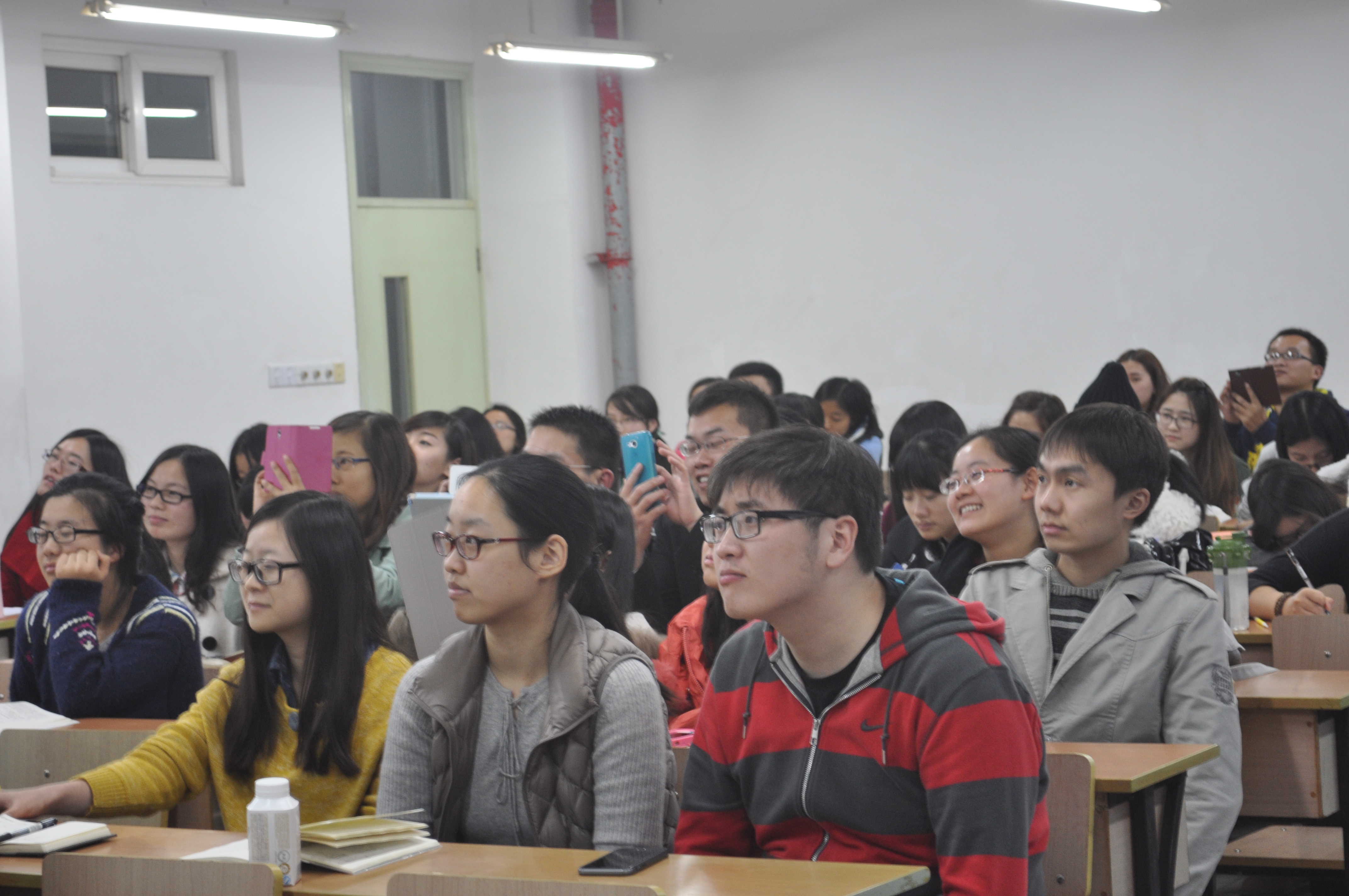 整个讲座幽默而不失教育意义,王老师把所有相关的经验倾囊相受,给本科和研究生同学了上了生动而有意义的求职课,极大的鼓舞了同学们找实习、找工作的士气,这也正是我们在低迷的就业大环境中最需要的。 随着时光飞逝,两个小时的讲座很快就接近尾声了。同学们依然意犹未尽,围在老师身边积极提问,期望能够得到更多的经验,解答更多的疑惑。 |