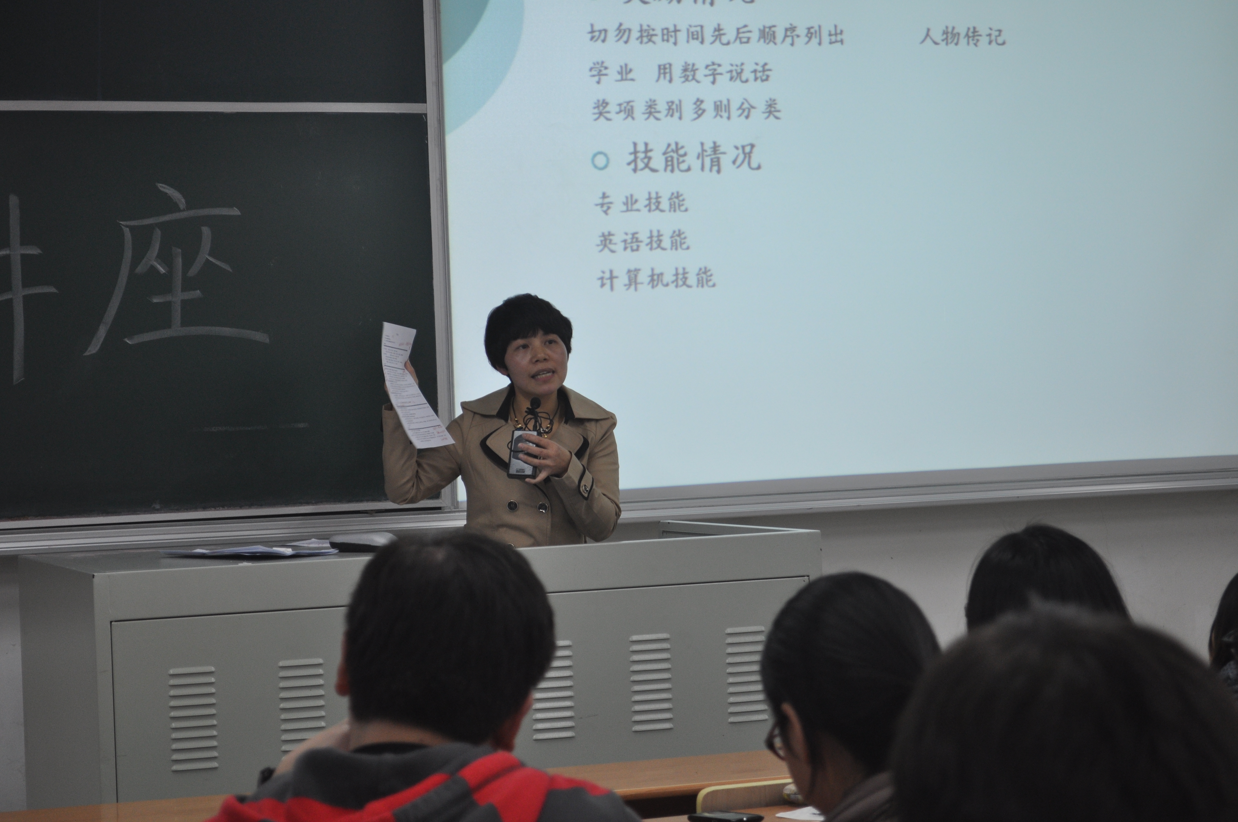 2014年11月19日18:30人兽性交 研究生会举办的职场系列讲座在四教110举行。讲座邀请了彩虹人生工作室福怎、多年主管就业工作的王丽华老师,就应该如何根据应聘岗位做简历、如何应对面试等等问题进行了非常详细的讲解。 整场讲座爆满,时不时爆发出的笑声以及王老师激情富有感染的讲述声吸引了四教其他教室的很多同学。 讲座开场后,王老师以作为苏宁云商招聘的面试官的切身经历作为开场,指出在求职过程中没有经验的应届生在应聘时出现的一些问题,并引出本次讲座的主题,如何通过简历和面试更好地展示自己。