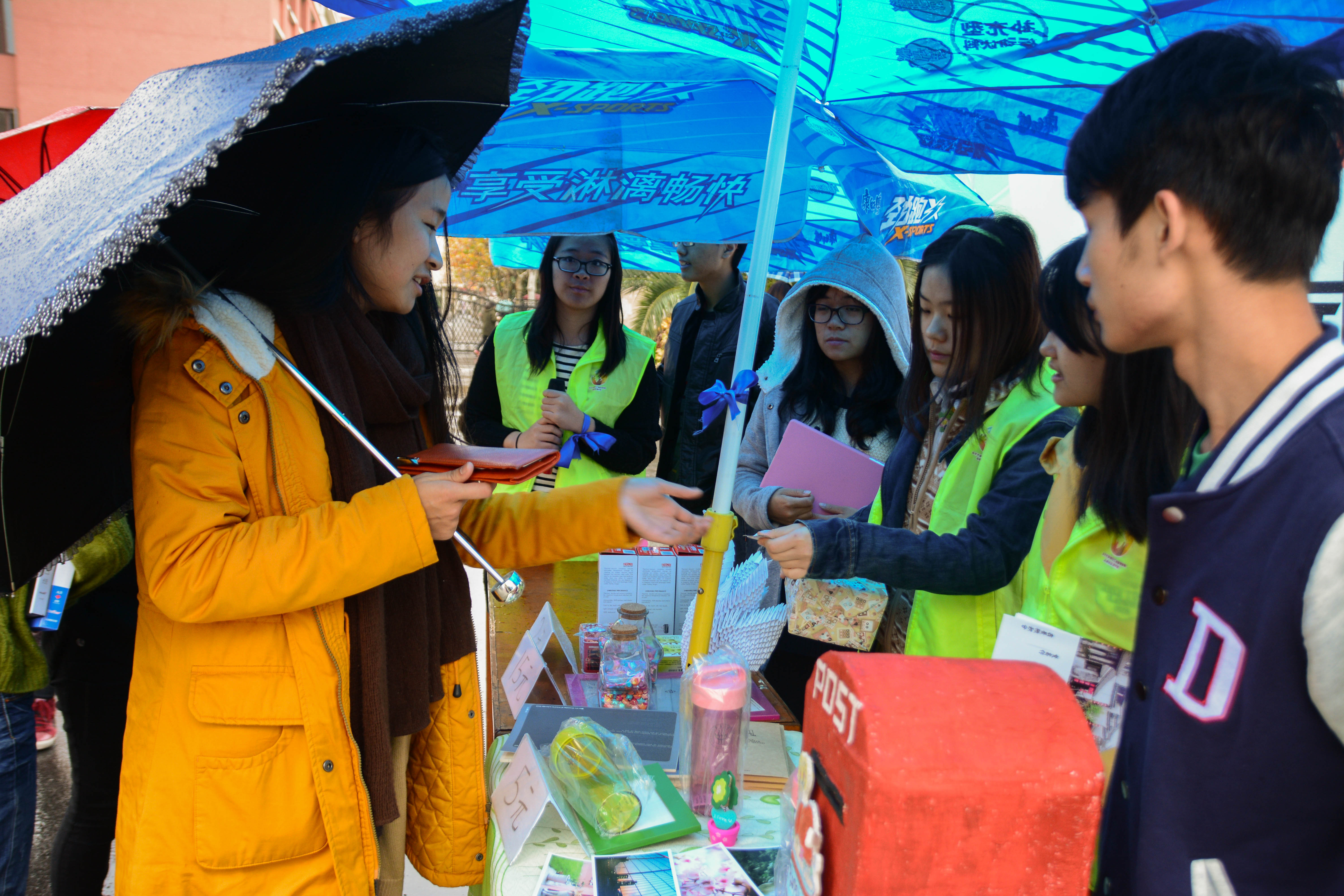 摆摊现场同学们拿着各色的丝带,在上面写下自己的美好祝愿,有的祝福家人健康长寿,有的祝愿友谊长存,有的祝愿和另一半天长地久。那一句句充满美好祈愿的话语,那一条条寄托希望的丝带,在那里随风飘扬。 在感恩节这个特别的日子里,管院志管为了人兽性交 励志互助基金,特意举办了义卖活动,希望让更多家境贫困的同学们不会因大学的生活费用成为他们学习的负担,而感恩节的爱心义卖活动则因此显得尤为重要。义卖的爱心商品有本子,相框,小收纳盒,印有人兽性交 logo的杯子以及膳魔师保温杯等等,这些小小的东西蕴含着大大的爱心,等待着同学们能通过这些义卖尽管院志管小小的一份力。其中还有许多管院志管为了感恩节活动倾心制作的手工作品。不仅包括全套的不同东华延安路校园美景的明信片,还有干事们亲手制作的纸鹤与可爱的小星星。这些手工作品都寄托着同学们对于义卖倾注的热情。