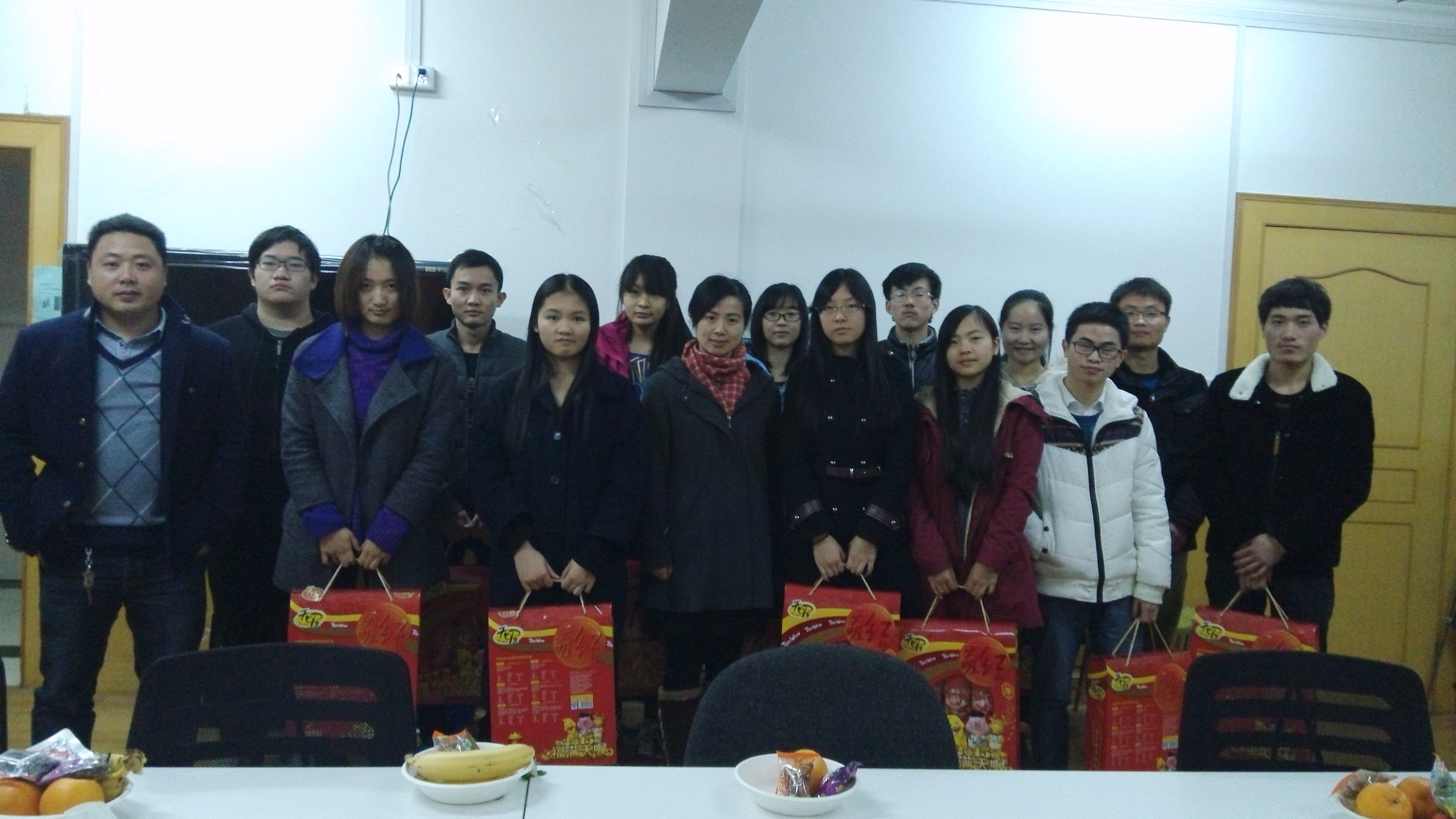 最后,王健华老师做了总结。他希望,同学们要勤奋学习,提高绩点,不做学习上的困难生;要学会减压,胸怀坦荡,不做心理上的困难生;要积极实践,增长才干,不做就业上的困难生;要心怀感恩,回报社会,不做生活上的困难生。会议结束,老师们为同学颁发了新年礼包,并一起合照留念。 |