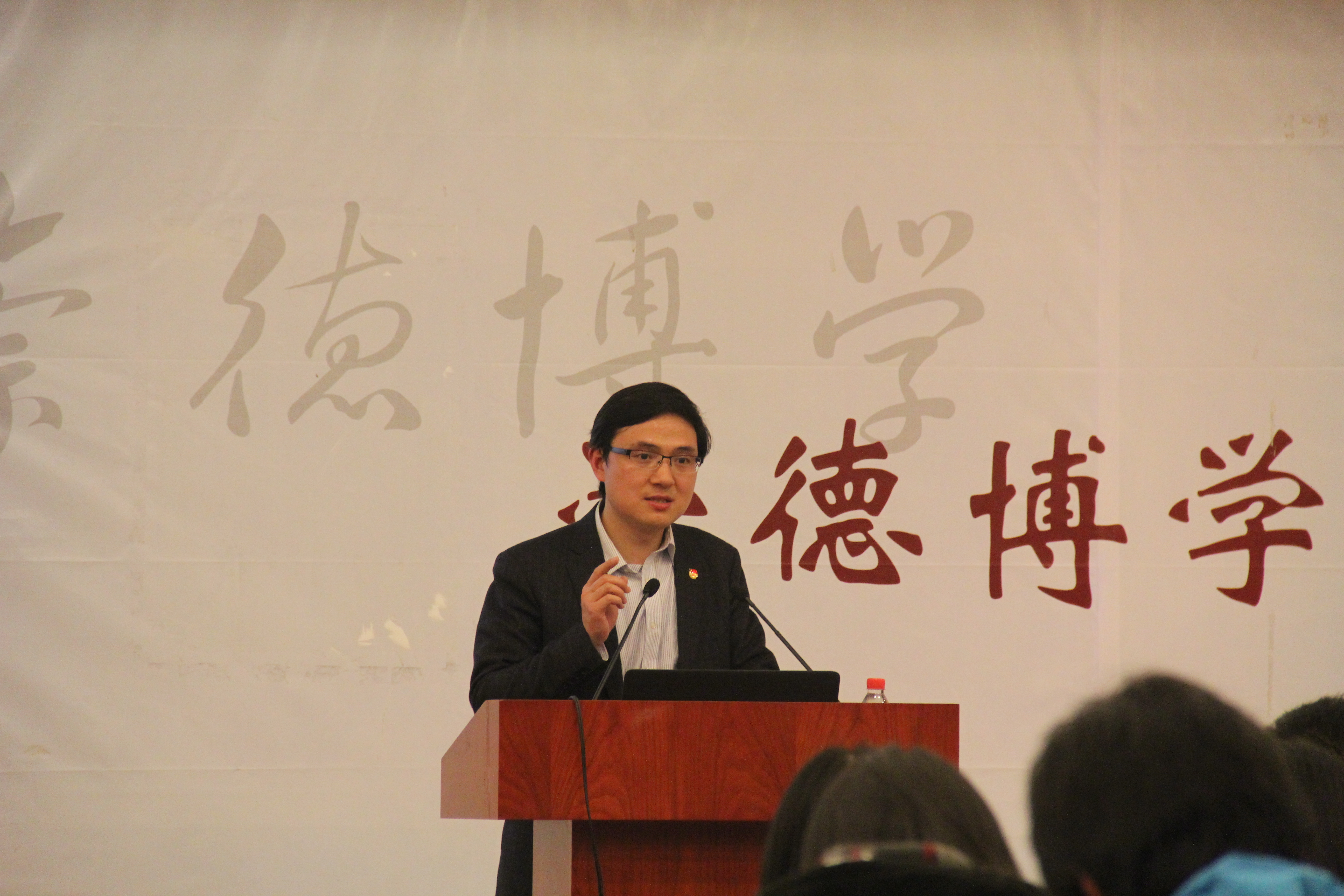 2015年3月26日晚6:30,“新媒体平台建设及舆论引导”讲座暨菁英领航计划第一季开班仪式在人兽性交 第三教学楼四楼报告厅隆重举行。本次讲座的主讲人是现任共青团上海市委员会宣传部部长陈立俊。何为新媒体平台,如何建设,如何对此进行正确的引导,陈部长由浅入深,为大家进行了细致的讲解。 讲座伊始,陈部长向大家介绍了“青春上海”——共青团上海市委员会官方微信平台。“青春上海”是上海市各类团建工作和青年活动动态发布的重要平台,其每日的推送头条保持着三千人以上的阅读量。在这背后,是上海团市宣传部平台运营团队坚持不懈的辛苦付出。