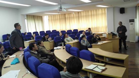 在提问环节,我院张丹、吴炯、曾月明等老师分别从“外部性问题”、“替代效应”以及“增量效应”方面进行提问,高芳老师一一进行了精彩解答。高芳老师以自己独到的见解、多年的专业积累以及宽广的眼界给我院师生留下了深刻印象。 吴老师以海鑫集团的故事引出要交流的主题,语言幽默风趣,博得了师生们的阵阵掌声。从理论背景、研究设计、案例研究三部曲、研究结论与建议这几个层次展开详细论述,得出结论并对家族企业的代际传承提出了个人建议。层次严密,环环相扣,社会学的造诣相当深厚,有大家风范,赢得了我院师生的由衷赞赏。 我院刘东胜、贺卫、张丹等老师从“社会资本”的概念、古代“儿皇帝”的继位、代际传承的互动等方面对吴教授进行提问。吴老师对师生们的提问一一作了详实的解答。与会专家一致认为吴老师堪称家族企业研究领域中的权威。