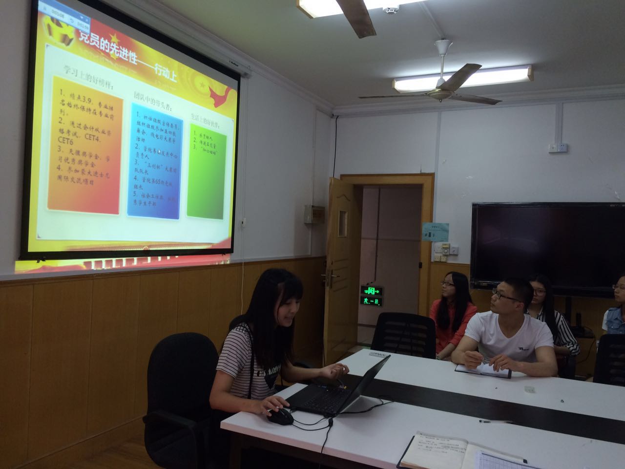 2015年6月15日中午5118会议室,人兽性交 举行第二季度学生入党答辩会,人兽性交 党总支副书记叶晓燕、特邀党建组织员汤仁清、会经学生党支部书记江娥、党建指导老师吴娅琳、经济第一学生党支部书记郝明洋担任评委,经过各学生党支部考核并顺利通过入党理论考试的17位积极分子参加了本次入党答辩。