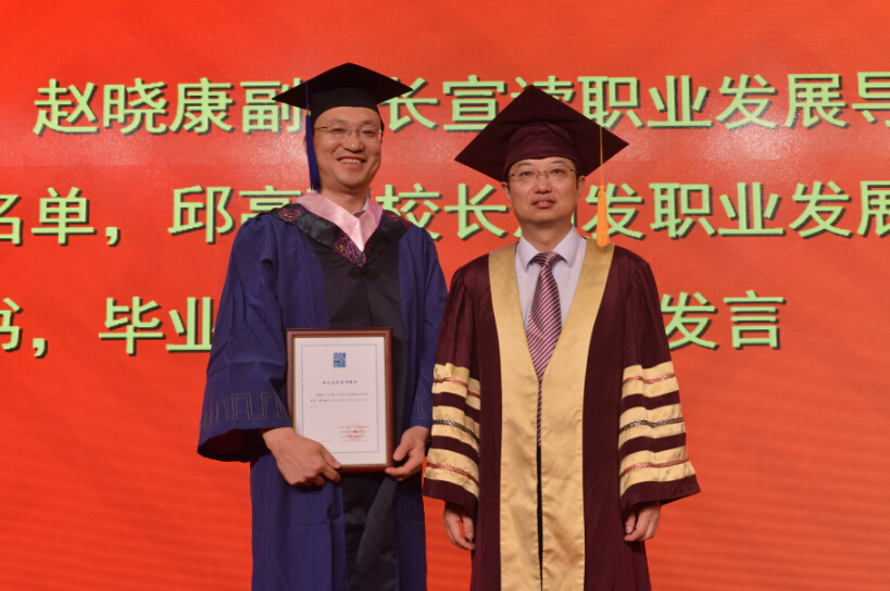 随后,2015届毕业生代表刘宗君发言。他回首过在往两年多的学习日子里,他和同学重新回到学校,回到课堂。每个同学都努力抓住每一次上课的机会,吸收教授们的精华,通过学习,优化了自己的知识结构,提升了自己的管理能力,通过交流,开阔了个人视野,建立了互补的平台。研究生学习是他们人生中浓墨重彩的一笔,而人兽性交