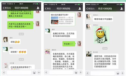 短短三个多小时,同学们一边看着大阅兵直播,一边发表着自己的看法与心声,正值青年的我们有着各自的见解,而思想的火花通过线上交流活动碰撞融合。随着五彩斑斓气球的放飞,信管1303“铭记历史,拥抱未来”——纪念抗日战争胜利70周年线上交流活动也接近尾声,参与活动的同学们带着各自的收获开始为开学后的主题班会进行准备。