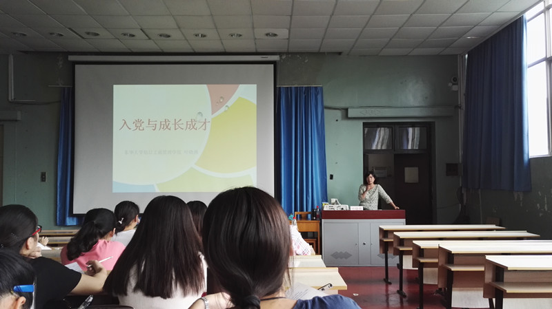 叶老师首先跟同学们讲解了为什么要入党的问题。叶老师用青年学生为什么要入党、为什么要吸引青年学生入党等问题引发学员们的思考,让学员们在思考与探索中,理清自身与中国共产党的关系,明确当代学生的使命,树立强烈的社会责任感,牢记全心全意为人民服务的宗旨。