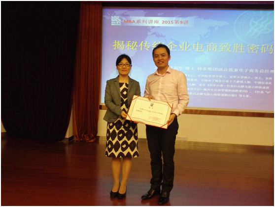 肖利华博士表达了对母校的感激之情,并在受聘仪式结束后,为人兽性交 师生做了主题为揭秘传统企业电商制胜密码的精彩演讲,分享了特步集团电子商务发展的成功经验。