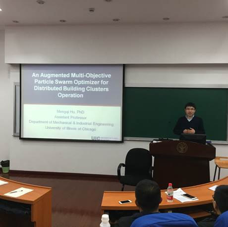 美国伊利诺伊大学芝加哥分校胡孟琪教授(Mengqi HU) 于11月23日到访人兽性交 。胡教授的主要研究方向包括复杂系统优化、分布式决策支持、Swarm群体智能算法;并应用于能源系统优化。 我院副院长姚洪心教授会见了胡孟琪教授,双方就研究生交换培养、学术交流以及科研合作进行了探讨。随后,胡教授在旭日楼107为我院师生作了题为“分布式建筑集群的能源运作优化-基于多目标的粒子群算法”的学术报告,现场基本上座无虚席。胡教授首先介绍了智能建筑集群以及粒子群算法的概念和由来,引起了在座同学们的兴趣。接着对如何应用多目标粒子群算法解决智能建筑能源系统中的决策问题进行了深入的剖析和论述。基于一个增强的多目标粒子群算法(AMOPSO),胡教授提出一个双层分散决策框架可以有效的求解智能建筑群的协作运营决策问题,并能够在较短的决策周期内很快的获得帕累托最优解。最后,胡教授结合未来的发展趋势,探讨了智能建筑能源系统的未来研究方向。 在提问环节,在场师生踊跃提问,就决策优化以及粒子群算法等专业问题与胡教授进行了互动探讨。胡教授以自己独到的见解和多年的专业积累,对老师以及同学们的提问一一作了详实的解答。现场反响热烈,学术气氛活跃。