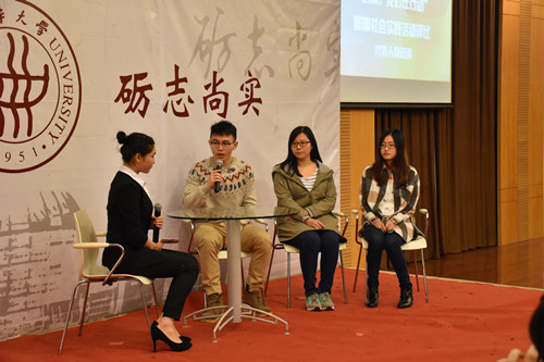 “学习‘四进四信’精神”主题团日活动评比”颁奖仪式中,会计1402、管科1401和金融1403班级代表们从自己的经历出发,向大家展示了团日活动中的点点滴滴,通过形象生动的访谈,观众们对“四进四信”精神有了更深刻的认识;第四届旭日杯微视频大赛以“原来如此”为主题,提倡大家用微视角演绎同学们的大学时代,在优秀作品展播中,来自15级的新生向大家讲述了青春的故事,情节诙谐幽默,博得观众哄堂大笑;I Can I Show优秀作品展示将活动推向了高潮,模特们手拿充满趣味与创意的涂鸦作品进行走秀展示,独具匠心的设计令在场观众眼前一亮;暑假社会实践表彰大会中,场外主持人与优秀队伍代表探讨了在社会实践中遇到的问题,分享了活动的历程和碰到的困难,号召所有同学充分发挥自身专业优势,深入社会,学会独立思考、解决实际问题,争取取得更好的成绩。