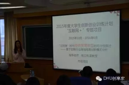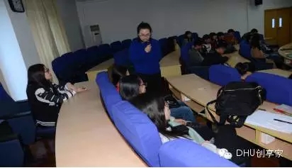 最后,她讲了如何撰写与实施创新创业计划,给了我们创新创业项目方面的指导。她先展示了以往几个成功实例。接下来由来自华东政法大学大三的学生李南希分享了自己的经验。她作为一个成功的项目申报者,分享了自己的经验和想法,她重点提出做一个项目最重要的就是坚持,同学们也从李南希同学的分享中汲取了经验,并且对于李南希同学的坚持论表示感同身受。