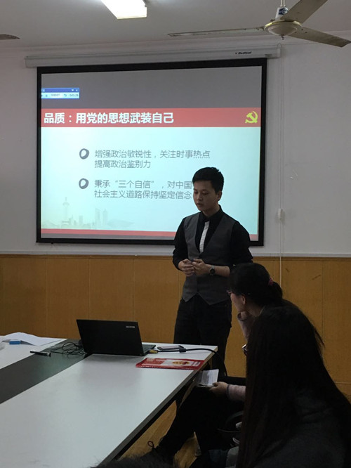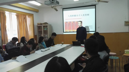 参加本次答辩的共有24位入党积极分子。各位积极分子结合党的先进性从对党的认识、入党动机、自己的学习与工作生活和自己的优缺点等方面进行了阐述。在答辩中,有同学讲到自己对党的认识来源于身边优秀的党员,来源于那句全心全意为人民服务,自己也想成为这样的人;有同学讲到自己十分渴望加入这样一个优秀的组织,通过集体的力量更好地服务同学、服务社会;也有大三的同学谈到自己的学习与工作,讲到自己虽然大一时没有处理好学习与工作的关系,成绩不够理想,但近三年来一直在努力和进步,并讲明了自己本学期的目标;更有同学坦诚地指出了自己的缺点,并给出了改正缺点的方法,说到自己会更加努力,以一个优秀党员的标准严格要求自己。各位积极分子均结合PPT的展示,从思想、学习、工作等方面进行了全面系统的介绍。