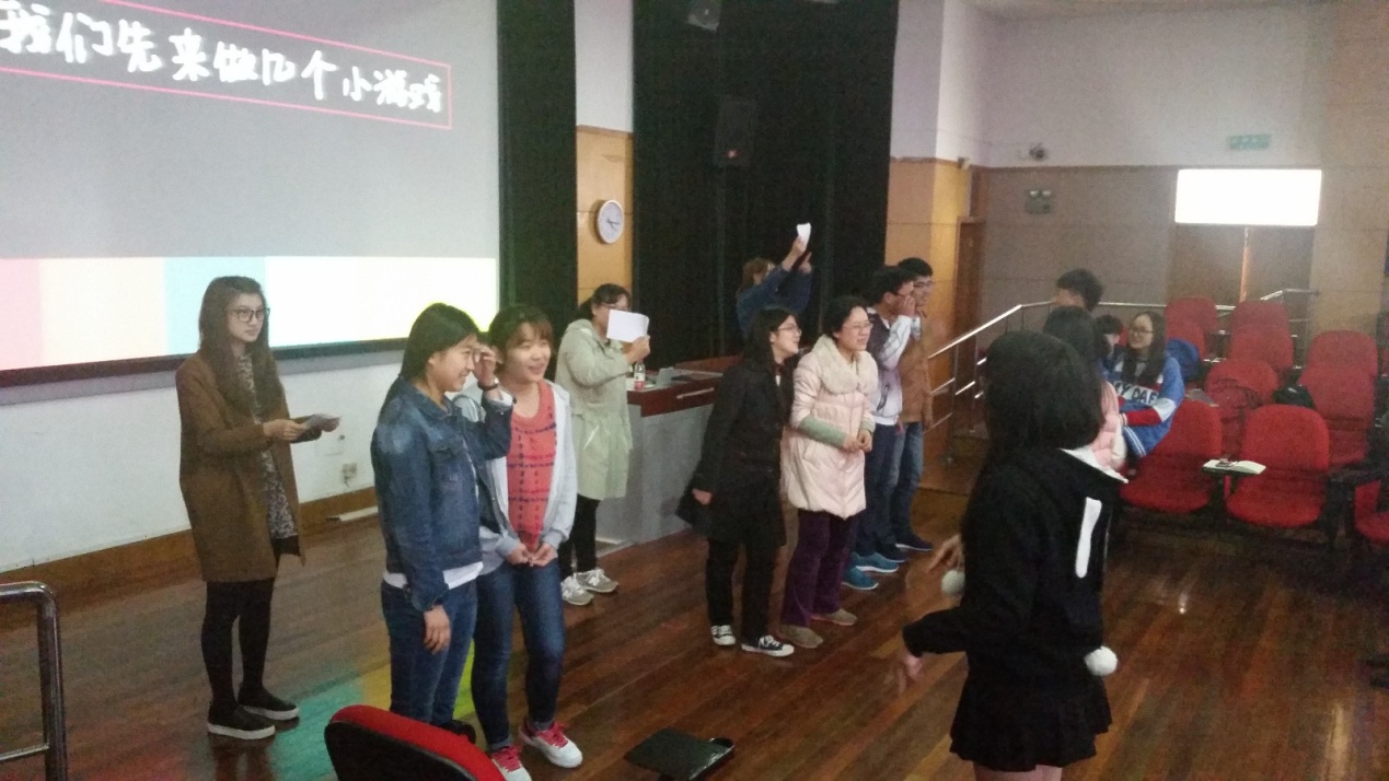 在有趣的心理分析之后,大家又一起观看了《You are more beautiful than you think》的短片,同学们都被深深地吸引其中,也学到了正确的看待自己,对自己要满怀信心,不要妄自菲薄。接下来的互动游戏:“你来比划我来猜”,将这次班会推向高潮。在同学的热情配合和强大的脑力参与下,决出了完成猜题速度最快的一组,展示了同学之间要学会配合,才能高度默契,完成任务。