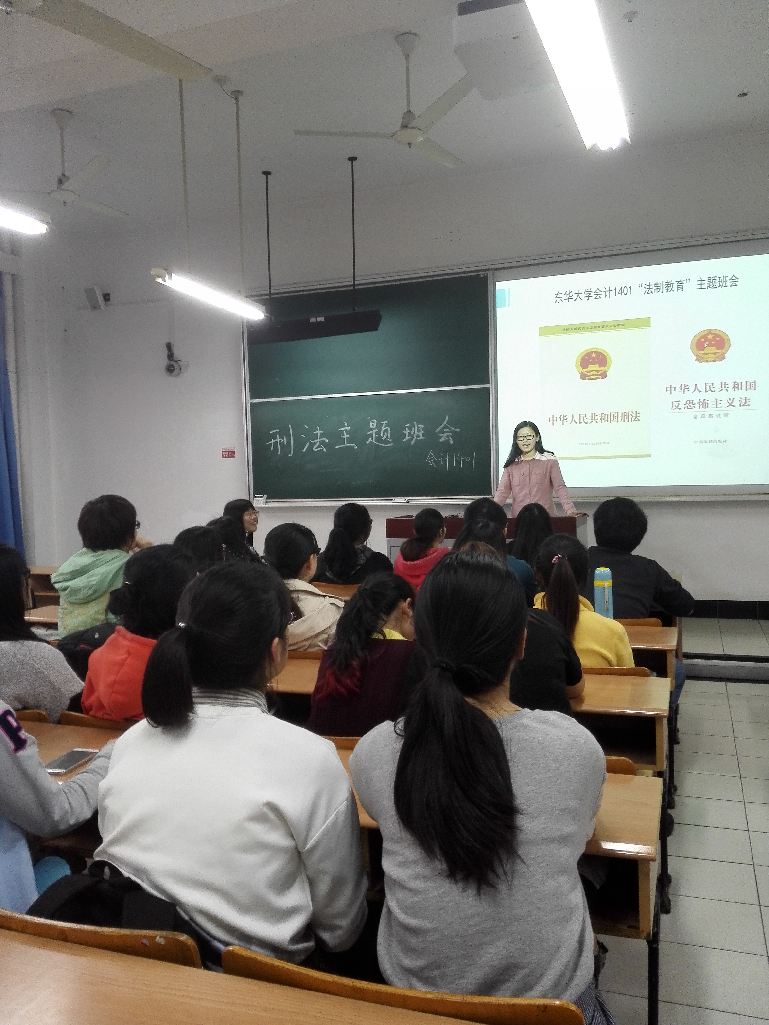 经中华人民共和国第十二届全国人民代表大会常务委员会第十六次和第十八次会议通过,《中华人民共和国刑法修正案(九)》和《中华人民共和国反恐怖主义法》分别于2015年11月1日和2016年1月1日起正式施行。为了进一步加强学生法制宣传,教育和引导学生养成学法、懂法、依法办事的良好习惯,会计1401班举行了学习《中华人民共和国刑法修正案(九)》和《中华人民共和国反恐怖主义法》的主题班会。