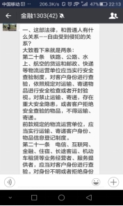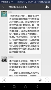 2016年4月14日晚,金融1303班在线上进行了以 《中华人民共和国刑法修正案(九)》和《中华人民共和国反恐怖主义法》为主题的班会讨论,班级的同学非常踊跃的在微信群里发表自己的看法。 以其中几个同学为例,刘明明介绍了本法所称恐怖事件的定义,是指正在发生或者已经发生的造成或者可能造成重大社会危害的恐怖活动。 王佳程说道 :《反恐怖主义法》全面系统地规定了我国反恐怖工作的体制、机制、手段和措施,它的出台必将成为我国依法打击暴恐活动,维护国家安全、公共安全和人民生命财产安全以及加强国际反恐合作提供更加坚实的法律支撑和保证。 谢微阐述了《反恐怖主义法》的意义:《反恐法》是在总结了近年来我国防范和打击恐怖活动工作的经验,借鉴国外有效做法的基础上制定的,是一部规范政府和社会开展反恐怖工作的法律。 蔡佩仙发表了自己的看法:刑法修正案适应了我国当前反腐败形势,回应了人民群众的呼声,为刑九中终身监禁的规定点赞。 苟华英说:本次刑法修正,正对我国当前经济社会发展和社会治安形式,对有关惩治恐怖主义极端主义犯罪,腐败犯罪,扰乱社会秩序犯罪等刑法规范做了大幅度修改完善,内容丰富且非常重要。 经过我们班级这次关于刑法修正案九和反恐怖主义法积极热烈的讨论,我们对国家的刑法和反恐怖主义法有了更深的认识和了解,也增长了在公共场合应对恐怖事件的的能力。通过《反恐怖主义法》的实施,表明了我们国家对恐怖主义的态度已经非常坚决,以非常明确地态度即立法,表现出我们对恐怖主义的反对态度。 撰稿人:张阳媚 |