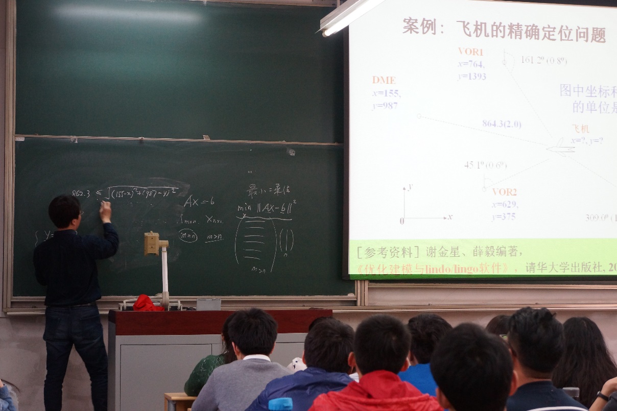 为了让同学们对数学建模有更深入的了解,尤老师结合飞机精确定位问题等经典案例,为同学们具体地讲解了Lindo等优化软件的用法以及建模的要点和步骤。有的同学听完后表示通过这节培训课自己对数学建模有了初步的认识,但同时也感觉到数学建模没有想象中的简单,对于刚入门的初学者来说还是有相当难度的。大部分同学听完后表示收获良多,此次培训课不仅让他们对数模竞赛有了更全面的认识,也有助于大家为参赛做好更充分的准备。同学们都希望俱乐部能多多开展此类有关数模的培训课。